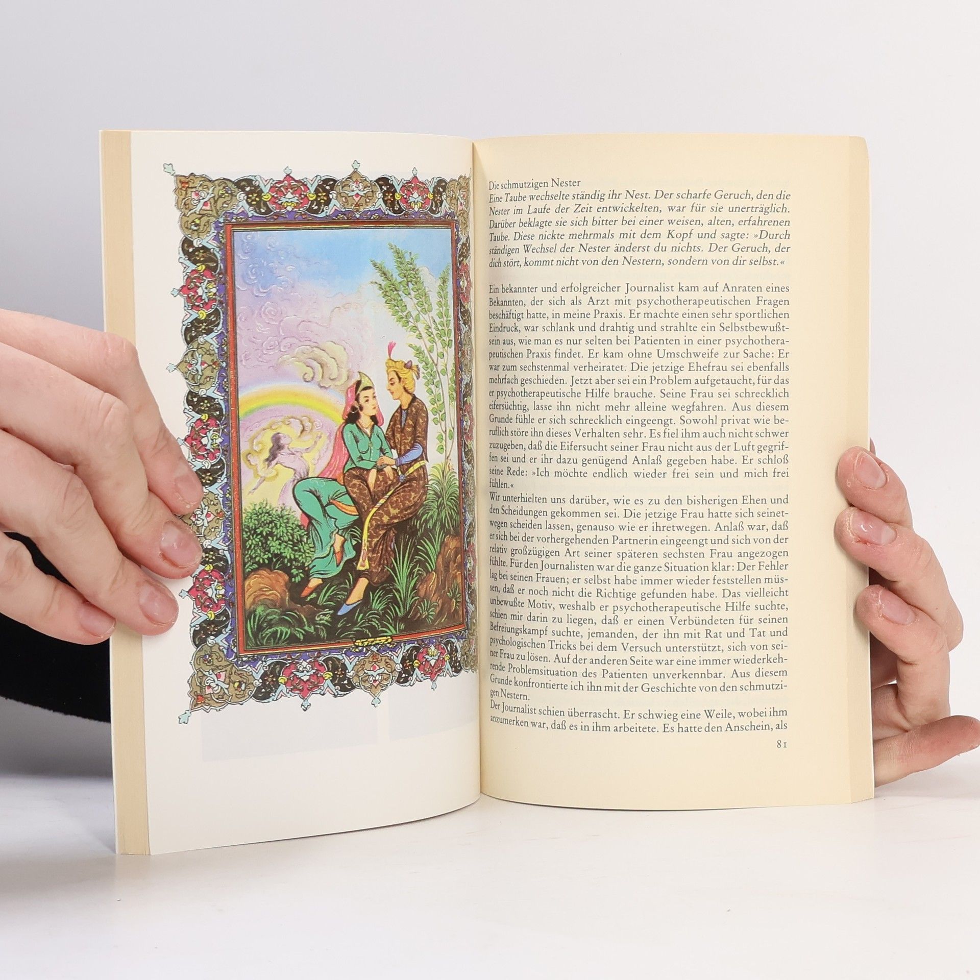 Fast einhundert gleichnishafte orientalische Geschichten sind in diesem Band versammelt und in Beziehung zu Fallbeispielen aus der psychotherapeutischen Praxis gesetzt. Es sind unterhaltende Geschichten, die jedoch nicht nur unterhalten, es sind Lehrstücke, die nicht nur lehren, es sind literarische Miniaturen, die nicht nur um der Kunst willen erzählt und niedergeschrieben wurden - es sind Gleichnisse zur Lebenshilfe, die jeder seinen eigenen Bedürfnissen entsprechend anwenden kann.