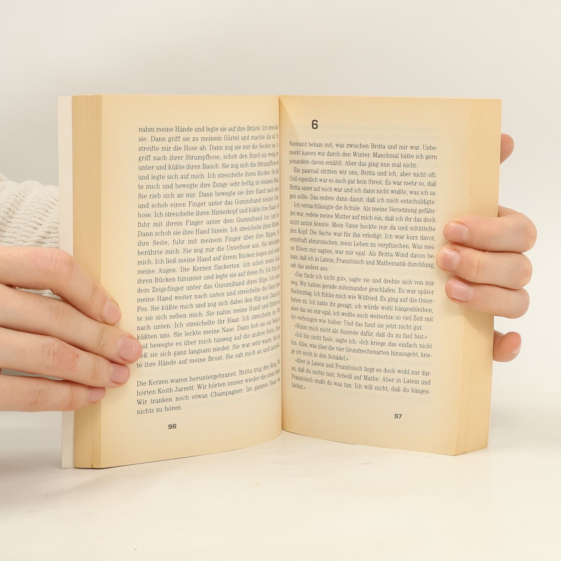 Eine Stadt im Ruhrgebiet. Anfang der 80er Jahre. Helmut ist 16, besucht die Oberstufe eines Gymnasiums, hat Eltern, die nicht miteinander reden und eine Mutter, die immer nur wissen möchte, was er eigentlich will. Vom Leben, zum Beispiel. Wenn er das nur selbst so genau wüßte. Seine lakonische Selbsteinschätzung: drogenabstinenter, heterosexueller Nichtdemonstrierer, so wenig Engagement wie nötig, so viel Leben (lassen) wie möglich. Helmut hört Platten von den Beatles und Dylan, tanzt zu Madness und Fischer Z, trägt wie alle anderen Bäckerhosen und verliebt sich in die Schulsprecherin Britta. Ihr zuliebe engagiert er sich in der Nicaragua-Gruppe, sie führt den kleinbürgerlichen, immer etwas schüchternen Jungen in die Liebe ein. Zur ersten Liebe aber gehört auch die erste Enttäuschung. Und so erzählt Helmut rückblickend sein Leben als Suche nach der einzigen Frau, die ihm etwas bedeutet hat, während seine amourösen Abenteuer ihn in Wirklichkeit kaltließen.