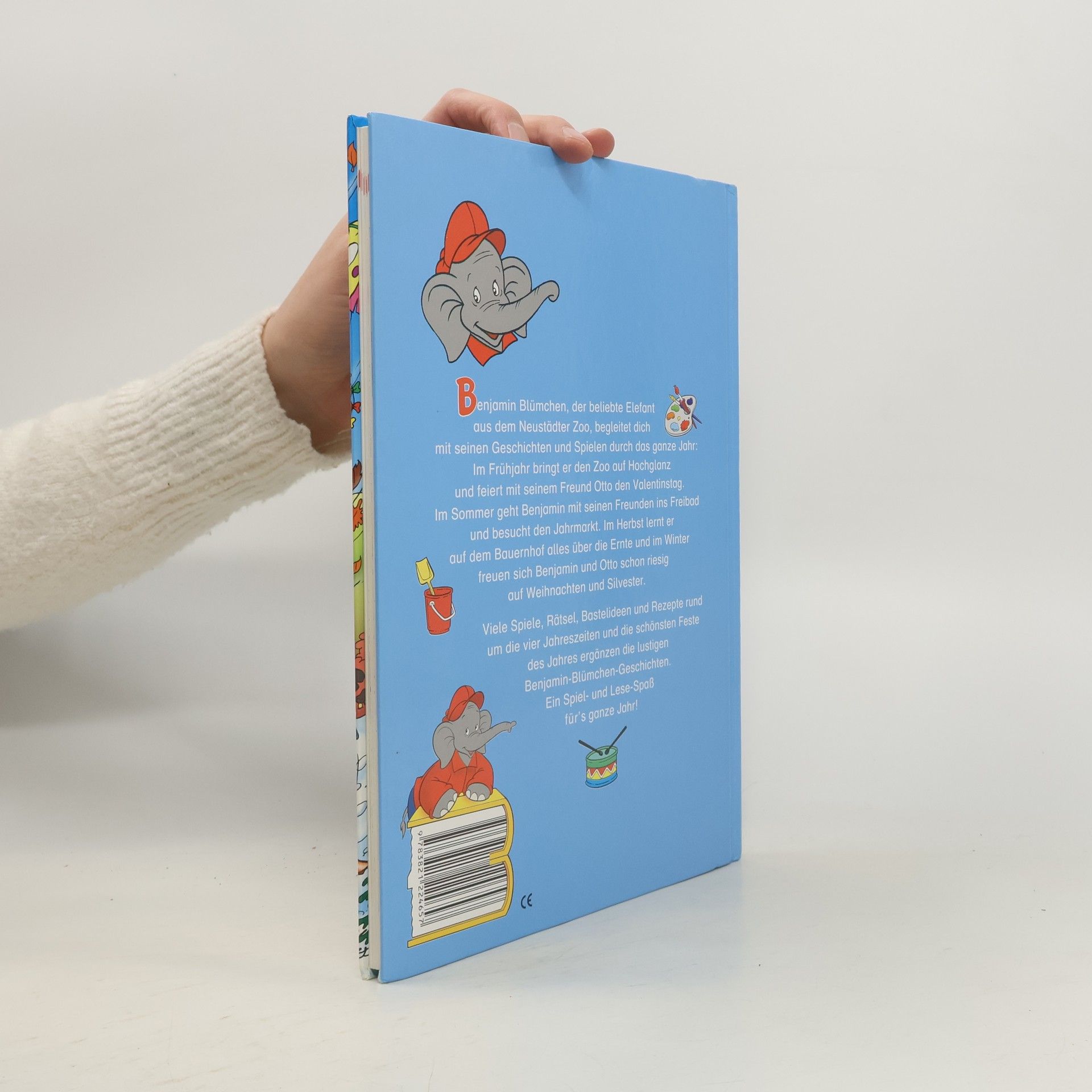 Benjamin Blümchen, der beliebte Elefant aus dem Neustädter Zoo, begleitet dich mit seinen Geschichten und Spielen durch das ganze Jahre: Im Frühjahr bringt er den Zoo auf Hochglanz und feiert mit seinem Freund Otto den Valentinstag. Im Sommer geht Benjamin mit seinen Freunden ins Freibad und besucht den Jahrmarkt. Im Herbst lernt er auf dem Bauernhof alles über die Ernte und im Winter freuen sich Benjamin und Otto schon riesig auf Weihnachten und Silvester. Viele Spiele, Rätsel, Bastelideen und Rezepte rund um die vier Jahreszeiten und die schönsten Feste des Jahres ergänzen die lustigen Benjamin Blümchen Geschichten