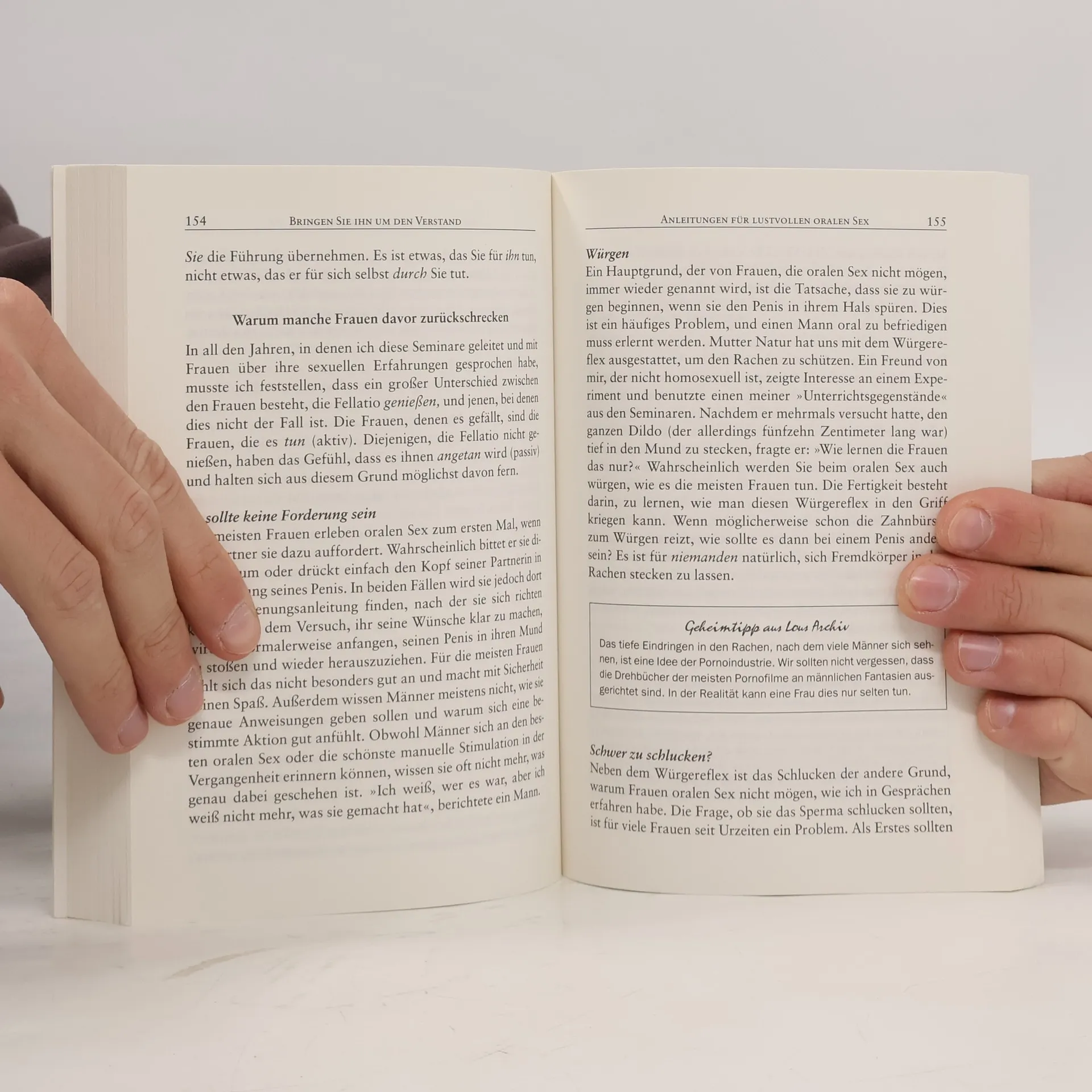 Vergnüglich bringt Lou Paget ihren Leserinnen Dinge bei, die »ihr« mehr Selbstbewusstsein in Sachen Sex geben – und von denen »er« garantiert nie genug bekommt: Zu Beginn stehen Tipps für eine erotische Atmosphäre und vielversprechende Kusstechniken im Mittelpunkt. Dass selbst das Benutzen von Kondomen absolut sexy sein kann, ist nur eine von zahlreichen Erfahrungen, die Lou Paget weitergibt. Oral- und Analsex, zwanzig aufregende Spiele mit den Händen und viele illustrierte Sex-Stellungen gehören zu den Künsten der perfekten Liebhaberin. Ein Buch, das schon beim Lesen Lust auf mehr macht.