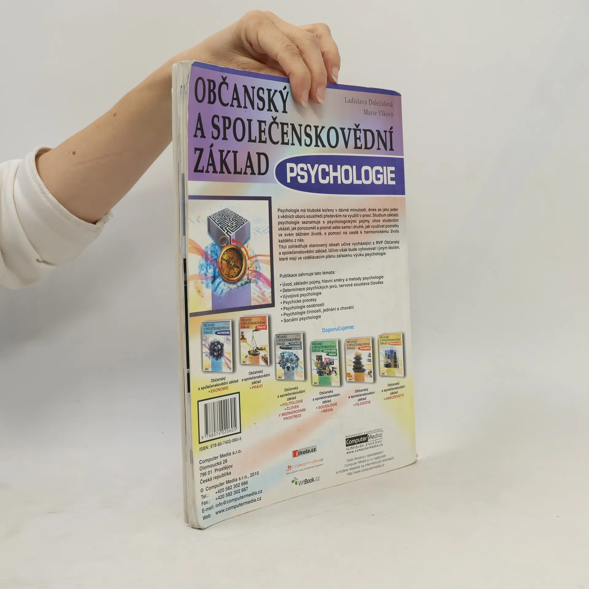 Učebnice psychologie komplexně pokrývá učivo předmětu psychologie na středních školách. Zabývá se psychickými procesy, psychologií poznání, psychologií osobnosti, vývojovou psychologií i sociální psychologií. Pomůže pochopit principy představivosti či myšlení, vysvětlí pojem inteligence i podstatu jejího měření, seznámí s fungováním paměti a v neposlední řadě zavede i do světa citů. Kniha rovněž objasní pohled na jednotlivce jako osobnost, zdůvodní různá chování a vlastnosti jednotlivce a dotkne se i duševních poruch. Učebnice plně odpovídá osnovám předmětu Psychologie ze vzdělávacího programu Občanský a společenskovědní základ.