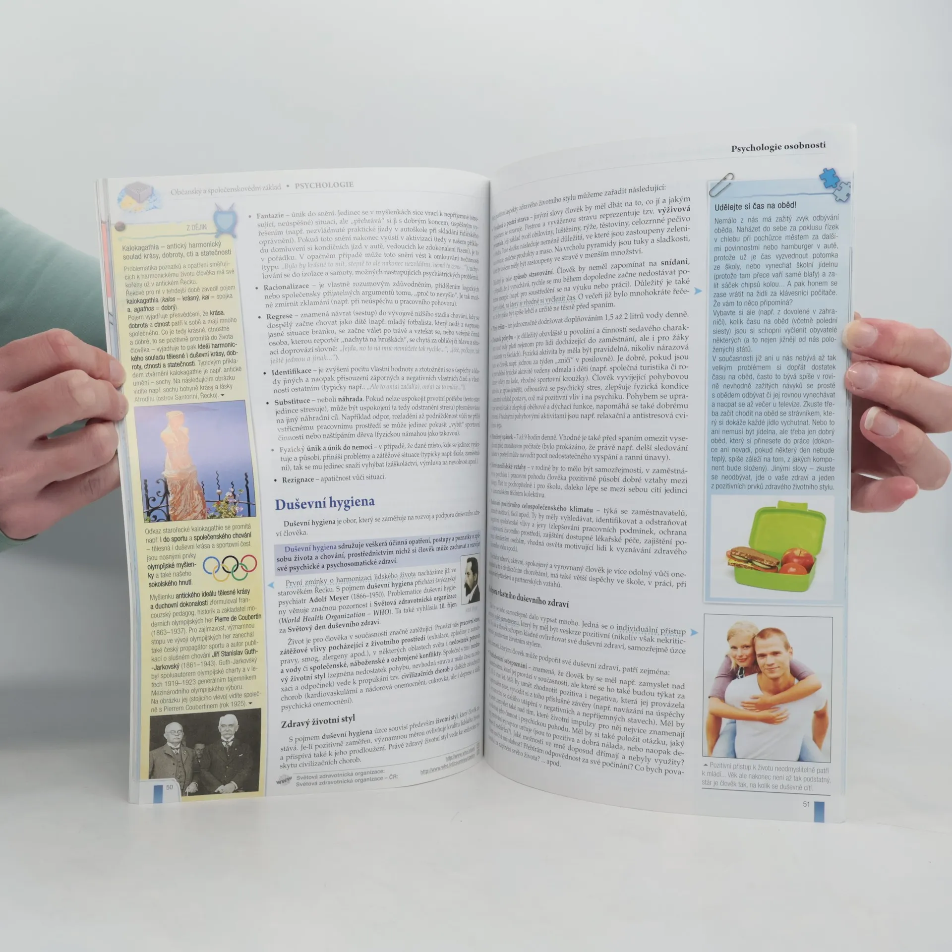 Učebnice psychologie komplexně pokrývá učivo předmětu psychologie na středních školách. Zabývá se psychickými procesy, psychologií poznání, psychologií osobnosti, vývojovou psychologií i sociální psychologií. Pomůže pochopit principy představivosti či myšlení, vysvětlí pojem inteligence i podstatu jejího měření, seznámí s fungováním paměti a v neposlední řadě zavede i do světa citů. Kniha rovněž objasní pohled na jednotlivce jako osobnost, zdůvodní různá chování a vlastnosti jednotlivce a dotkne se i duševních poruch. Učebnice plně odpovídá osnovám předmětu Psychologie ze vzdělávacího programu Občanský a společenskovědní základ.