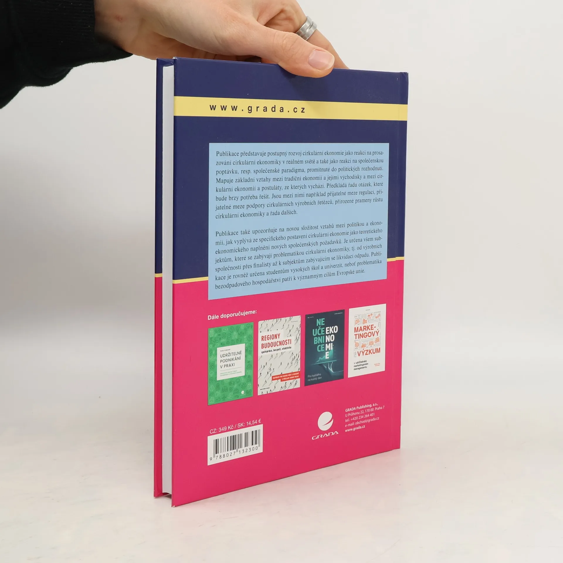 Publikace představuje postupný rozvoj cirkulární ekonomie jako reakci na prosazování cirkulární ekonomiky v reálném světě a také jako reakci na společenskou poptávku, resp. společenské paradigma, promítnuté do politických rozhodnutí. Mapuje základní vztahy mezi tradiční ekonomií a jejími východisky a mezi cirkulární ekonomií a postuláty, ze kterých vychází. Předkládá řadu otázek, které bude brzy potřeba řešit. Jsou mezi nimi například přijatelné meze regulací, přijatelné meze podpory cirkulárních výrobních řetězců, přirozené prameny růstu cirkulární ekonomiky a řada dalších. Publikace také upozorňuje na novou složitost vztahů mezi politikou a ekonomií, jak vyplývá ze specifického postavení cirkulární ekonomie jako teoretického ekonomického naplnění nových společenských požadavků. Je určena všem subjektům, které se zabývají problematikou cirkulární ekonomiky, tj. od výrobních společností přes finalisty až k subjektům zabývajícím se likvidací odpadu. Publikace je rovněž určena studentům vysokých škol a univerzit, neboť problematika bezodpadového hospodářství patří k významným cílům Evropské unie.