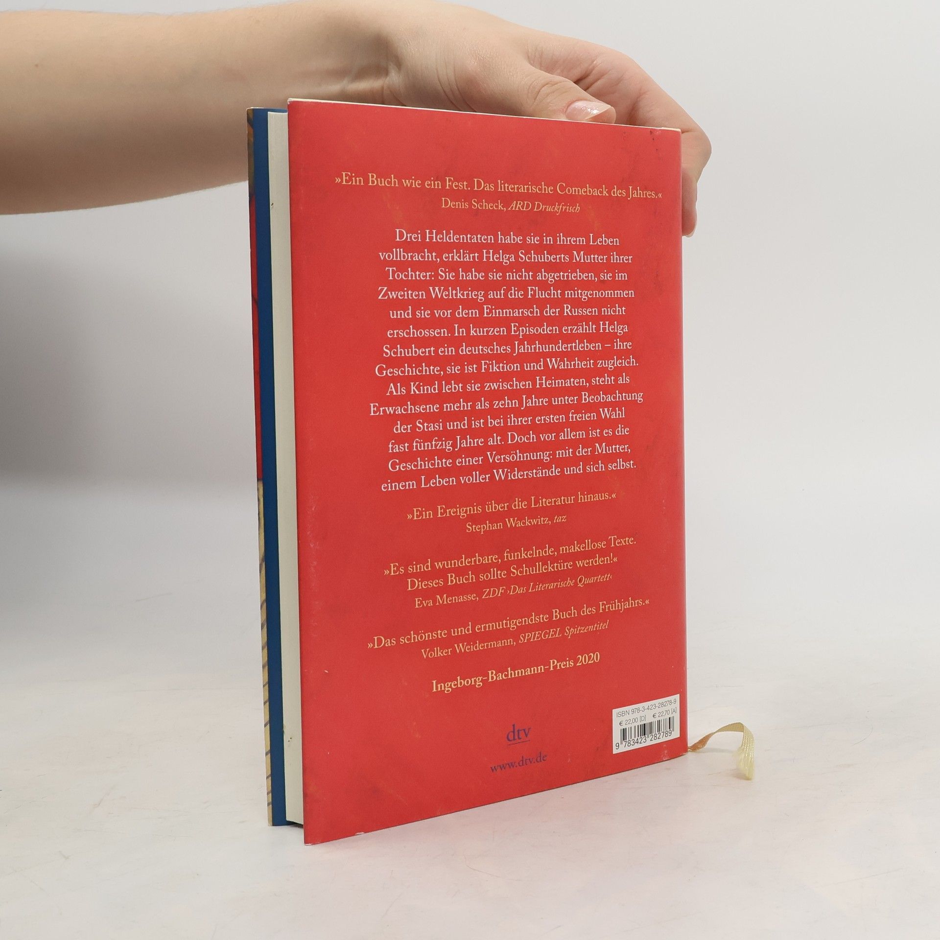Ein Jahrhundertleben – verwandelt in Literatur Drei Heldentaten habe sie in ihrem Leben vollbracht, erklärt Helga Schuberts Mutter ihrer Tochter: Sie habe sie nicht abgetrieben, sie im Zweiten Weltkrieg auf die Flucht mitgenommen und sie vor dem Einmarsch der Russen nicht erschossen. In kurzen Episoden erzählt Helga Schubert ein deutsches Jahrhundertleben – ihre Geschichte, sie ist Fiktion und Wahrheit zugleich. Als Kind lebt sie zwischen Heimaten, steht als Erwachsene mehr als zehn Jahre unter Beobachtung der Stasi und ist bei ihrer ersten freien Wahl fast fünfzig Jahre alt. Doch vor allem ist es die Geschichte einer Versöhnung: mit der Mutter, einem Leben voller Widerstände und sich selbst.