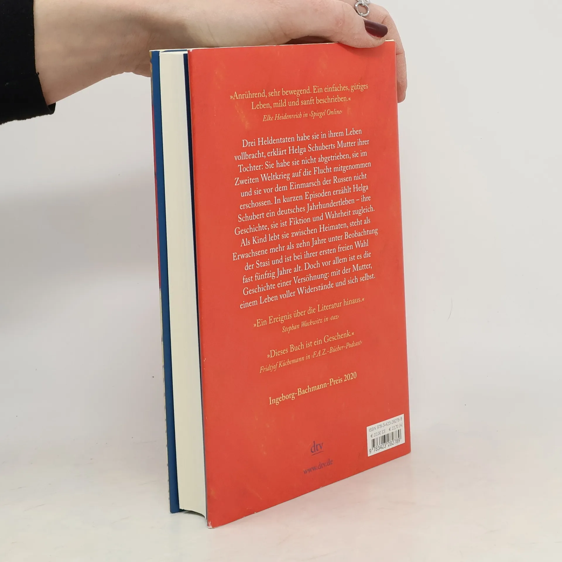 Ein Jahrhundertleben – verwandelt in Literatur Drei Heldentaten habe sie in ihrem Leben vollbracht, erklärt Helga Schuberts Mutter ihrer Tochter: Sie habe sie nicht abgetrieben, sie im Zweiten Weltkrieg auf die Flucht mitgenommen und sie vor dem Einmarsch der Russen nicht erschossen. In kurzen Episoden erzählt Helga Schubert ein deutsches Jahrhundertleben – ihre Geschichte, sie ist Fiktion und Wahrheit zugleich. Als Kind lebt sie zwischen Heimaten, steht als Erwachsene mehr als zehn Jahre unter Beobachtung der Stasi und ist bei ihrer ersten freien Wahl fast fünfzig Jahre alt. Doch vor allem ist es die Geschichte einer Versöhnung: mit der Mutter, einem Leben voller Widerstände und sich selbst.