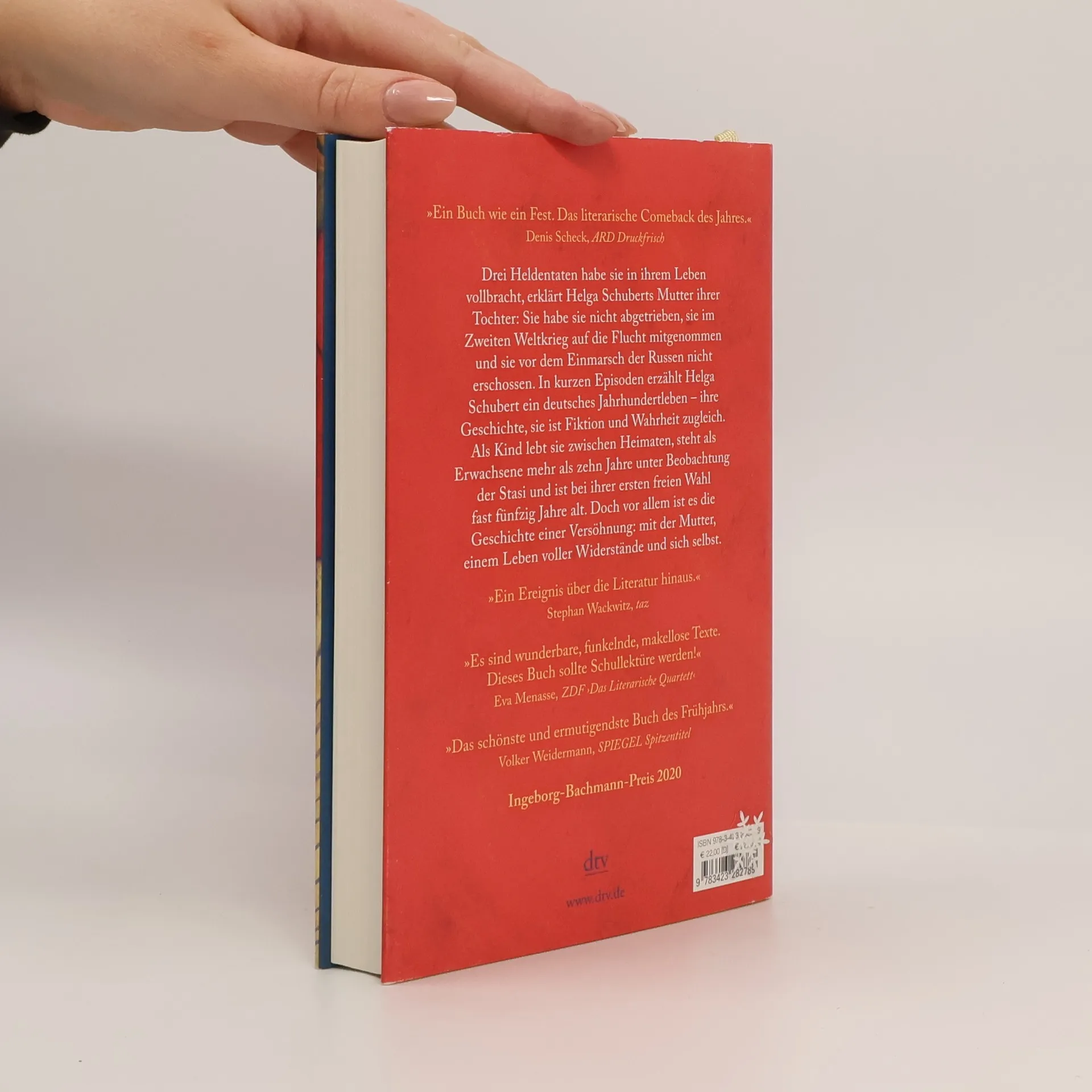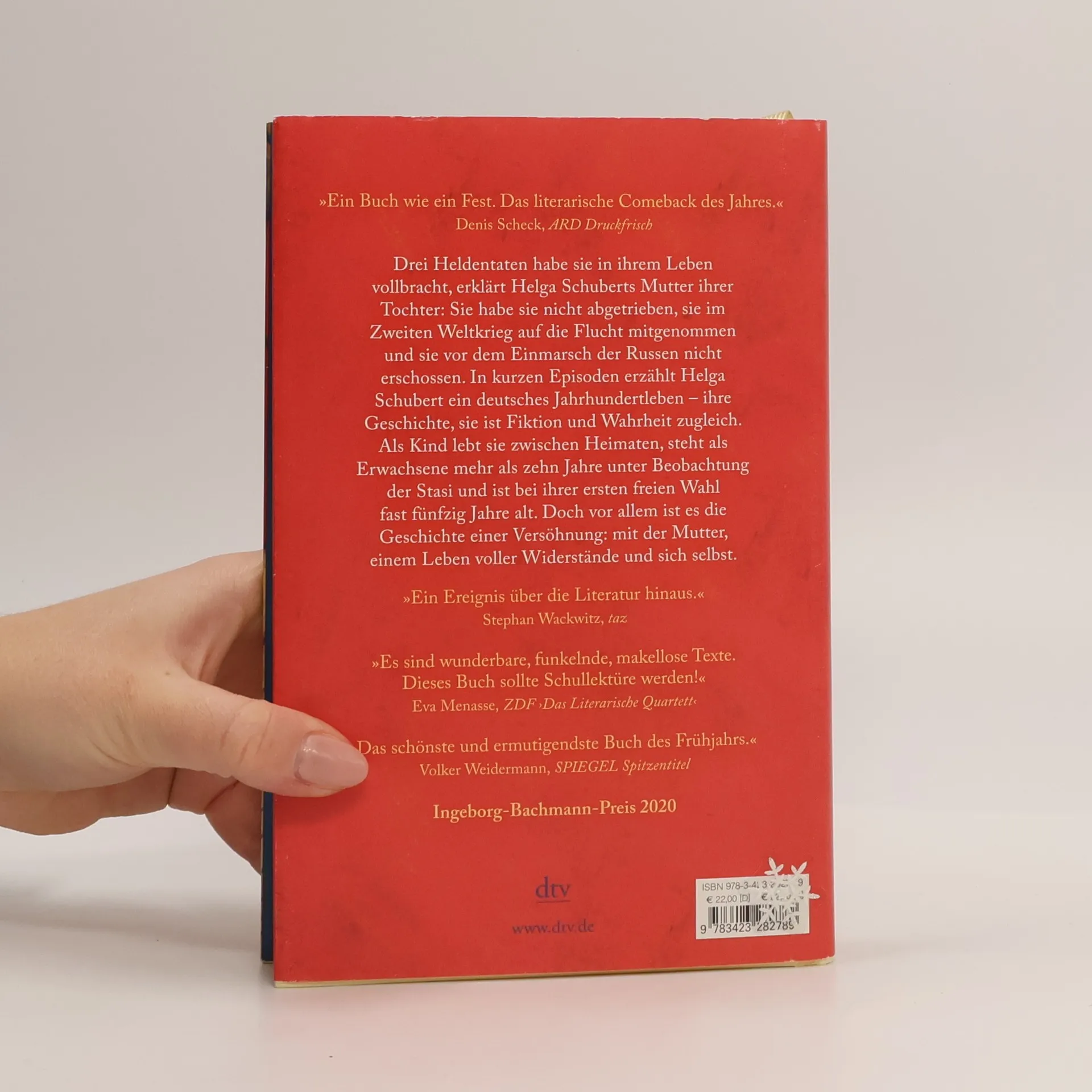 Ein Jahrhundertleben – verwandelt in Literatur Drei Heldentaten habe sie in ihrem Leben vollbracht, erklärt Helga Schuberts Mutter ihrer Tochter: Sie habe sie nicht abgetrieben, sie im Zweiten Weltkrieg auf die Flucht mitgenommen und sie vor dem Einmarsch der Russen nicht erschossen. In kurzen Episoden erzählt Helga Schubert ein deutsches Jahrhundertleben – ihre Geschichte, sie ist Fiktion und Wahrheit zugleich. Als Kind lebt sie zwischen Heimaten, steht als Erwachsene mehr als zehn Jahre unter Beobachtung der Stasi und ist bei ihrer ersten freien Wahl fast fünfzig Jahre alt. Doch vor allem ist es die Geschichte einer Versöhnung: mit der Mutter, einem Leben voller Widerstände und sich selbst.