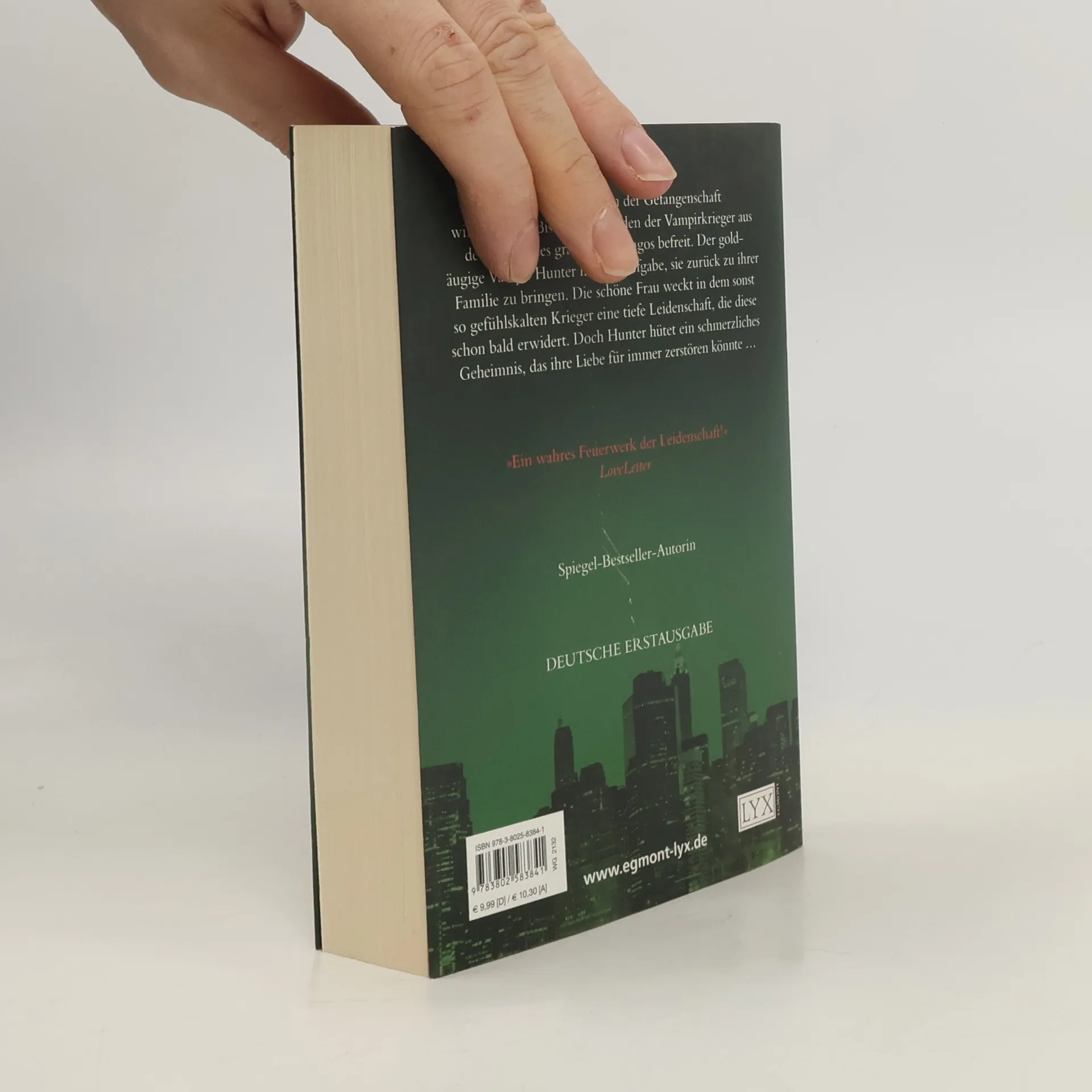 In ihrer Jugend führte Corinne Bishop ein sorgenfreies Leben als Adoptivtochter einer reichen Familie. Ihre Welt wird schlagartig auf den Kopf gestellt, als sie von dem bösartigen Vampir Dragos verschleppt wird. Nach Jahren der Gefangenschaft wird Corinne von einem Orden mächtiger Vampirkrieger gerettet – doch die schrecklichen Qualen, die sie erdulden musste, haben tiefe Spuren in ihrer Seele hinterlassen. Der einzige Hoffnungsschimmer in ihrem Leben ist der goldäugige Vampir Hunter, der sie auf ihrer Heimreise beschützen soll. Einst arbeitete Hunter als Auftragsmörder für Dragos, doch nun hat er geschworen, seinen ehemaligen Boss zu Fall zu bringen. Aber wie weit kann er gehen, ohne Corinne erneut in Gefahr zu bringen?