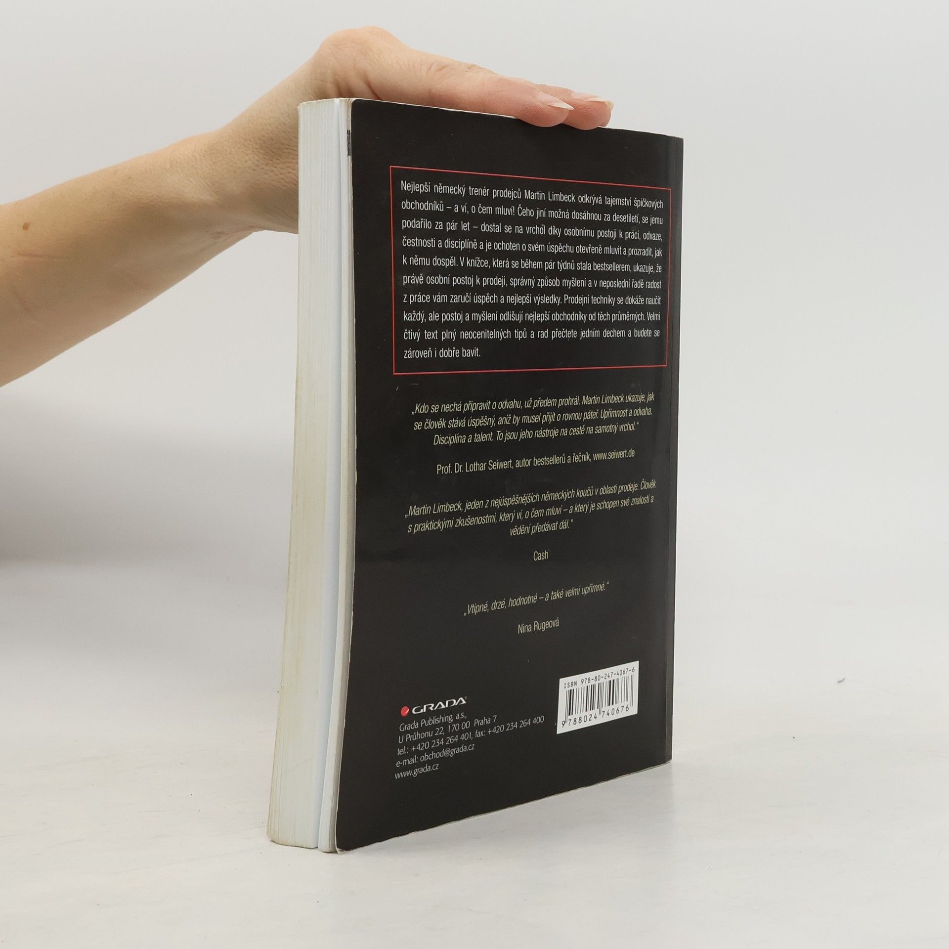 Nejlepší německý trenér prodejců Martin Limbeck odkrývá tajemství špičkových obchodníků - a ví, o čem mluví! Čeho jiní možná dosáhnou za desetiletí, se jemu podařilo za pár let - dostal se na vrchol díky osobnímu postoji k práci, odvaze, čestnosti a disciplíně a je ochoten o svém úspěchu otevřeně mluvit a prozradit, jak k němu dospěl. V knížce, která se během pár týdnů stala bestsellerem, ukazuje, že právě osobní postoj k prodeji, správný způsob myšlení a v neposlední řadě radost z práce vám zaručí úspěch a nejlepší výsledky. Prodejní techniky se dokáže naučit každý, ale postoj a myšlení odlišují nejlepší obchodníky od těch průměrných. Velmi čtivý text plný neocenitelných tipů a rad přečtete jedním dechem a budete se zároveň i dobře bavit.