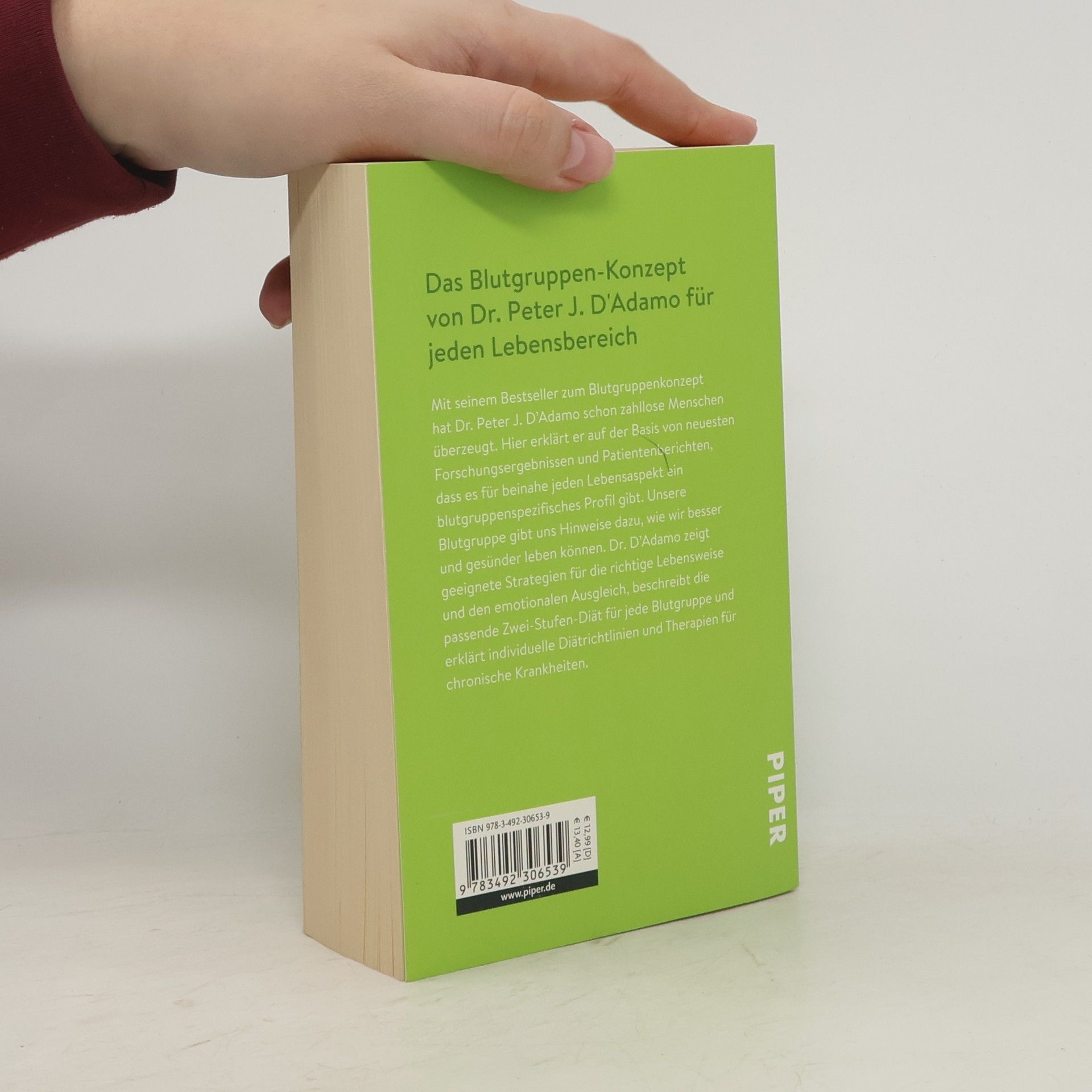 Mit seinem Bestseller zum Blutgruppenkonzept hat Dr. Peter J. D’Adamo schon zahllose Menschen überzeugt. Hier erklärt er auf der Basis von neuesten Forschungsergebnissen und Patientenberichten, dass es für beinahe jeden Lebensaspekt ein blutgruppenspezifisches Profil gibt. Unsere Blutgruppe gibt uns Hinweise dazu, wie wir besser und gesünder leben können. D’Adamo zeigt geeignete Strategien für die richtige Lebensweise und den emotionalen Ausgleich, beschreibt die passende Zweistufendiät für jede Blutgruppe und erklärt individuelle Diätrichtlinien und Therapien für chronische Krankheiten.