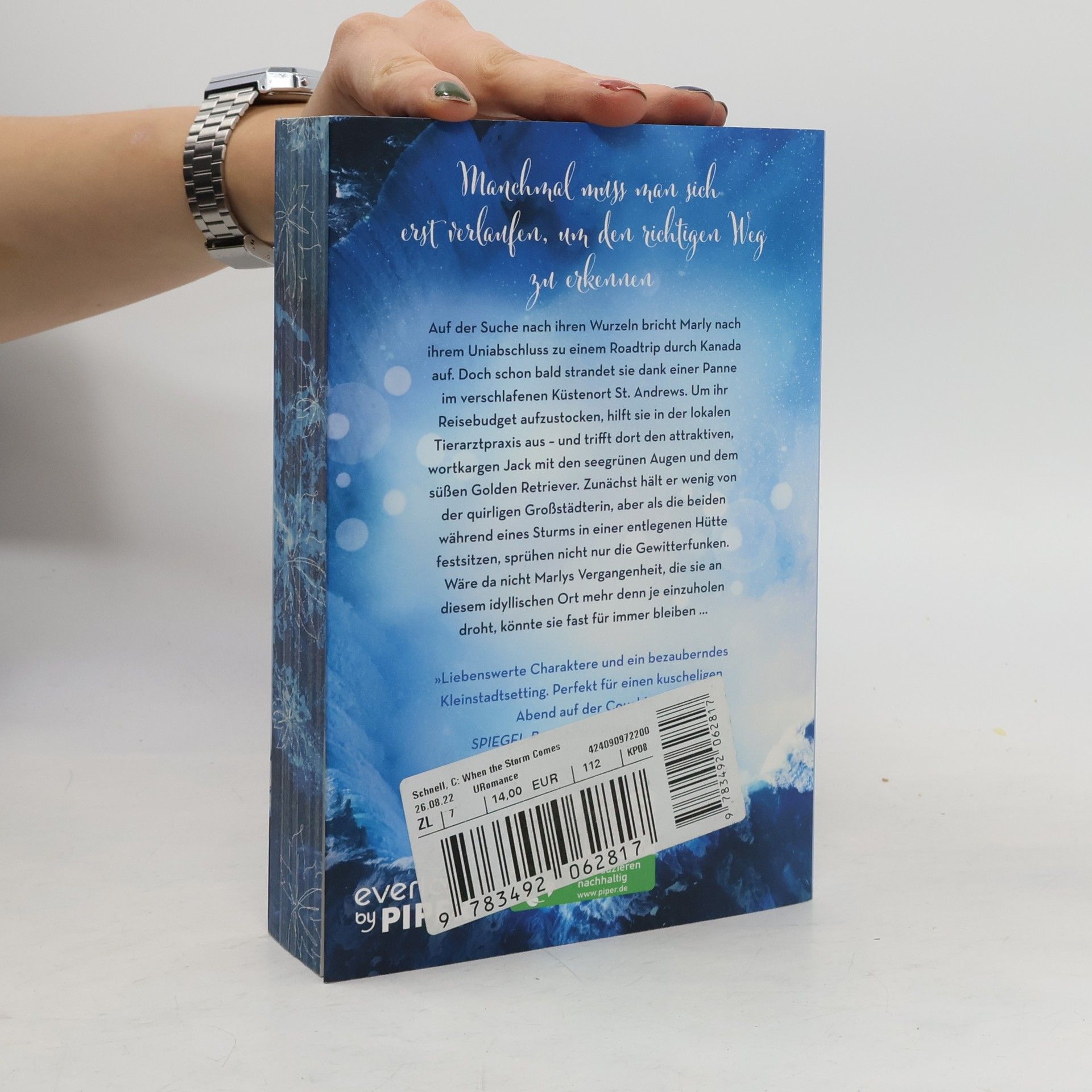 Die Weite Kanadas und ein kleines Küstenstädtchen – zwischen Tierarztpraxis, Naturausflügen und Lagerfeuerabenden sprühen in dieser New-Adult-Romance die Funken! Nach einer Panne während ihres Roadtrips strandet Marly im verschlafenen St. Andrews. Um ihr Reisebudget aufzubessern, hilft sie in der Tierarztpraxis, wo sie den attraktiven, wortkargen Jack mit seinen seegrünen Augen und seinem süßen Golden Retriever trifft. Zunächst hält er wenig von der quirligen Großstädterin, doch als sie während eines Sturms in einer abgelegenen Hütte festsitzen, entfaltet sich eine unerwartete Verbindung. Wäre da nicht Marlys Vergangenheit, die sie an diesem idyllischen Ort einholt, könnte sie fast für immer bleiben. Diese Geschichte ist leicht und beflügelnd, mit einer wohligen Wärme, die das Herz berührt. Ideal für alle, die bereit sind, ihr Herz in Kanada zu verlieren. Es ist eine herzerwärmende Liebesgeschichte, die dazu ermutigt, sich dem Sturm des Lebens hinzugeben und im eigenen Licht zu erstrahlen. Die Autorin, die selbst eine Zeit in Kanada lebte, lässt sich von ihren Erfahrungen für die Sommer-in-Kanada-Reihe inspirieren.