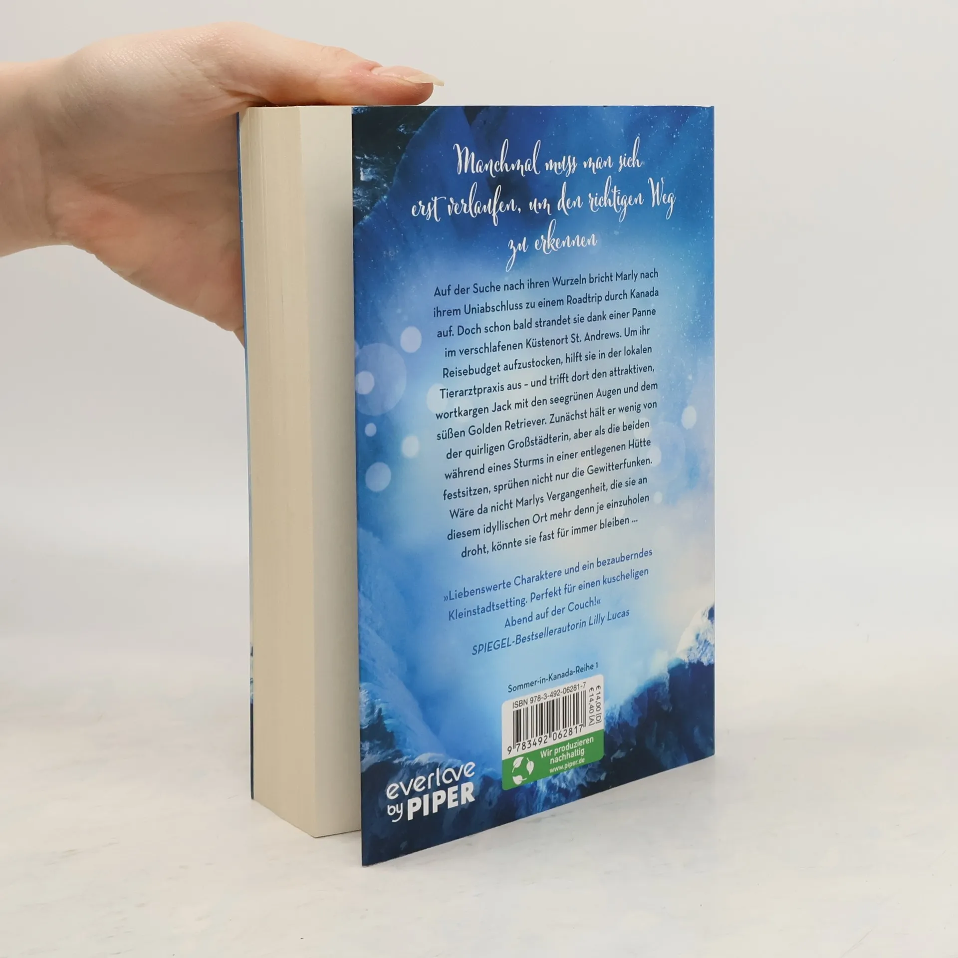 Die Weite Kanadas und ein kleines Küstenstädtchen – zwischen Tierarztpraxis, Naturausflügen und Lagerfeuerabenden sprühen in dieser New-Adult-Romance die Funken! Nach einer Panne während ihres Roadtrips strandet Marly im verschlafenen St. Andrews. Um ihr Reisebudget aufzubessern, hilft sie in der Tierarztpraxis, wo sie den attraktiven, wortkargen Jack mit seinen seegrünen Augen und seinem süßen Golden Retriever trifft. Zunächst hält er wenig von der quirligen Großstädterin, doch als sie während eines Sturms in einer abgelegenen Hütte festsitzen, entfaltet sich eine unerwartete Verbindung. Wäre da nicht Marlys Vergangenheit, die sie an diesem idyllischen Ort einholt, könnte sie fast für immer bleiben. Diese Geschichte ist leicht und beflügelnd, mit einer wohligen Wärme, die das Herz berührt. Ideal für alle, die bereit sind, ihr Herz in Kanada zu verlieren. Es ist eine herzerwärmende Liebesgeschichte, die dazu ermutigt, sich dem Sturm des Lebens hinzugeben und im eigenen Licht zu erstrahlen. Die Autorin, die selbst eine Zeit in Kanada lebte, lässt sich von ihren Erfahrungen für die Sommer-in-Kanada-Reihe inspirieren.