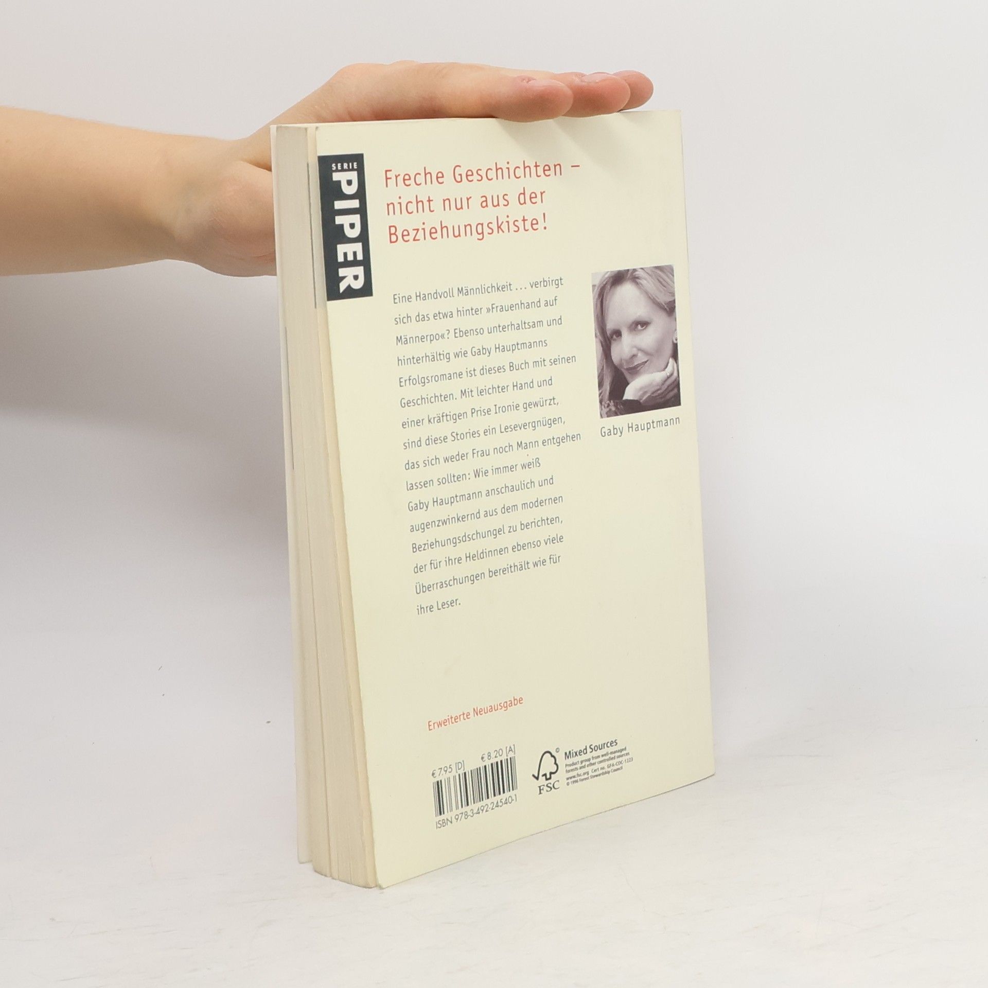 Eine Handvoll Männlichkeit. verbirgt sich das etwa hinter 'Frauenhand auf Männerpo'? Ebenso unterhaltsam und hinterhältig wie Gaby Hauptmanns Erfolgsromane ist dieses Buch mit seinen Geschichten. Mit leichter Hand und einer kräftigen Prise Ironie gewürzt, sind diese Stories ein Lesevergnügen, das sich weder Frau noch Mann entgehen lassen sollten: Wie immer weiß Gaby Hauptmann anschaulich und augenzwinkernd aus dem modernen Beziehungsdschungel zu berichten, der für ihre Heldinnen ebenso viele Überraschungen bereithält wie für ihre Leser.