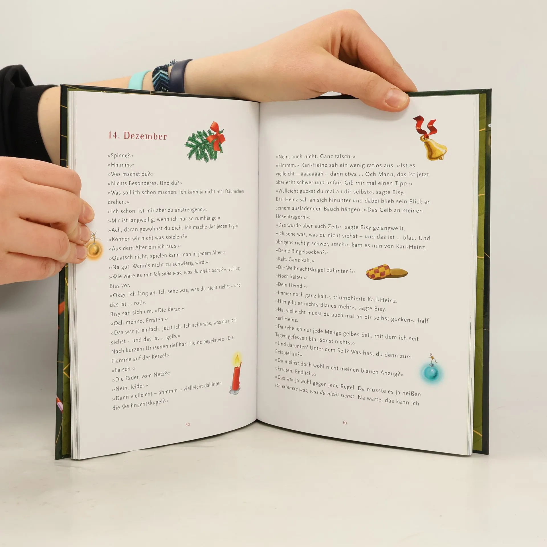 Eines schönen Dezembermorgens geht der grummeligen Spinne Karl-Heinz die Fliege Bisy ins Netz: ein vorzüglicher Festtagsbraten, der, nach Spinnenart zum Paket verschnürt, bis Heiligabend im Netz baumeln soll. Bisy bleiben 24 Tage, um Karl-Heinz von seinen Festtagsplänen abzubringen. 24 Tage, um der Spinne so richtig auf die Nerven zu gehen. Und auf einmal stellt sich die Frage, wer hier eigentlich Opfer und wer Täter ist.