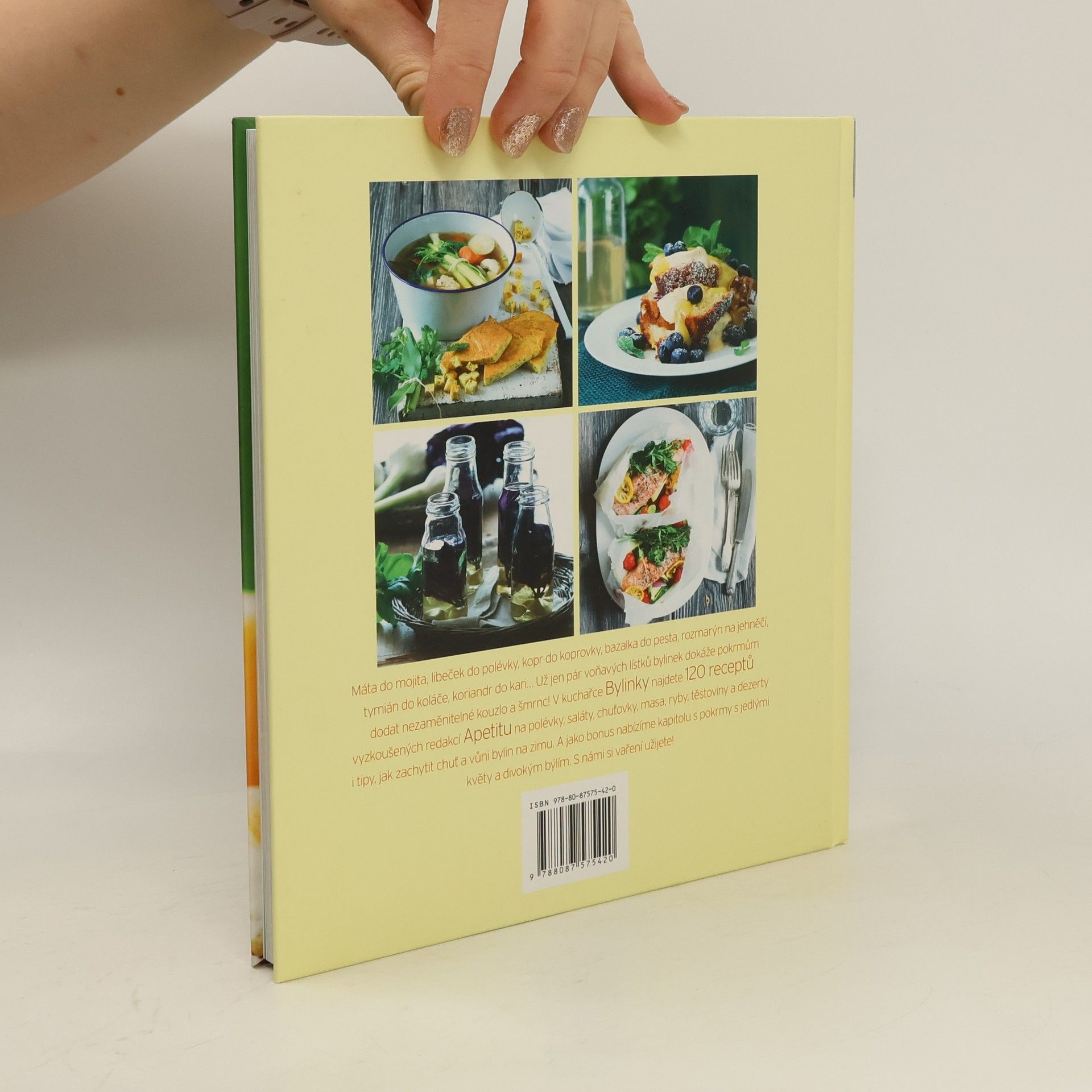 Máta do mojita, libeček do polévky, kopr do koprovky, bazalka do pesta, rozmarýn na jehněčí, tymián do koláče, koriandr do kari… Už jen pár voňavých lístků bylinek dokáže pokrmům dodat nezaměnitelné kouzlo a šmrnc! V kuchařce Bylinky najdete 120 receptů vyzkoušených redakcí Apetitu na polévky, saláty, chuťovky, masa, ryby, těstoviny a dezerty i tipy, jak zachytit chuť a vůni bylin na zimu. A jako bonus nabízíme kapitolu s pokrmy s jedlými květy a divokým býlím. S námi si vaření užijete! Kniha je rozdělena do 8 kapitol: Polévky (kuřecí vývar s bylinkovým svítkem, mrkvová s koriandrem…) Na malý hlad (nakládaný hermelín s libečkem, tabouleh, tvarohová pomazánka, sýrová krém s pažitkou…) Maso (jehněčí, koprová omáčka, kyjevský řízek s bylinkami) Ryby a plody moře (mušle s petrželkou, losos v balíčku, halibut s koprovým pestem) Těstoviny a noky Voňavá dochucovadla (bylinkový olej, bylinkový ocet, domácí pesto…) Z louky a lesa Sladké mámení (pavlova, levandulová bábovka, ananasové frappé s mátou, tymiánová sodovka)