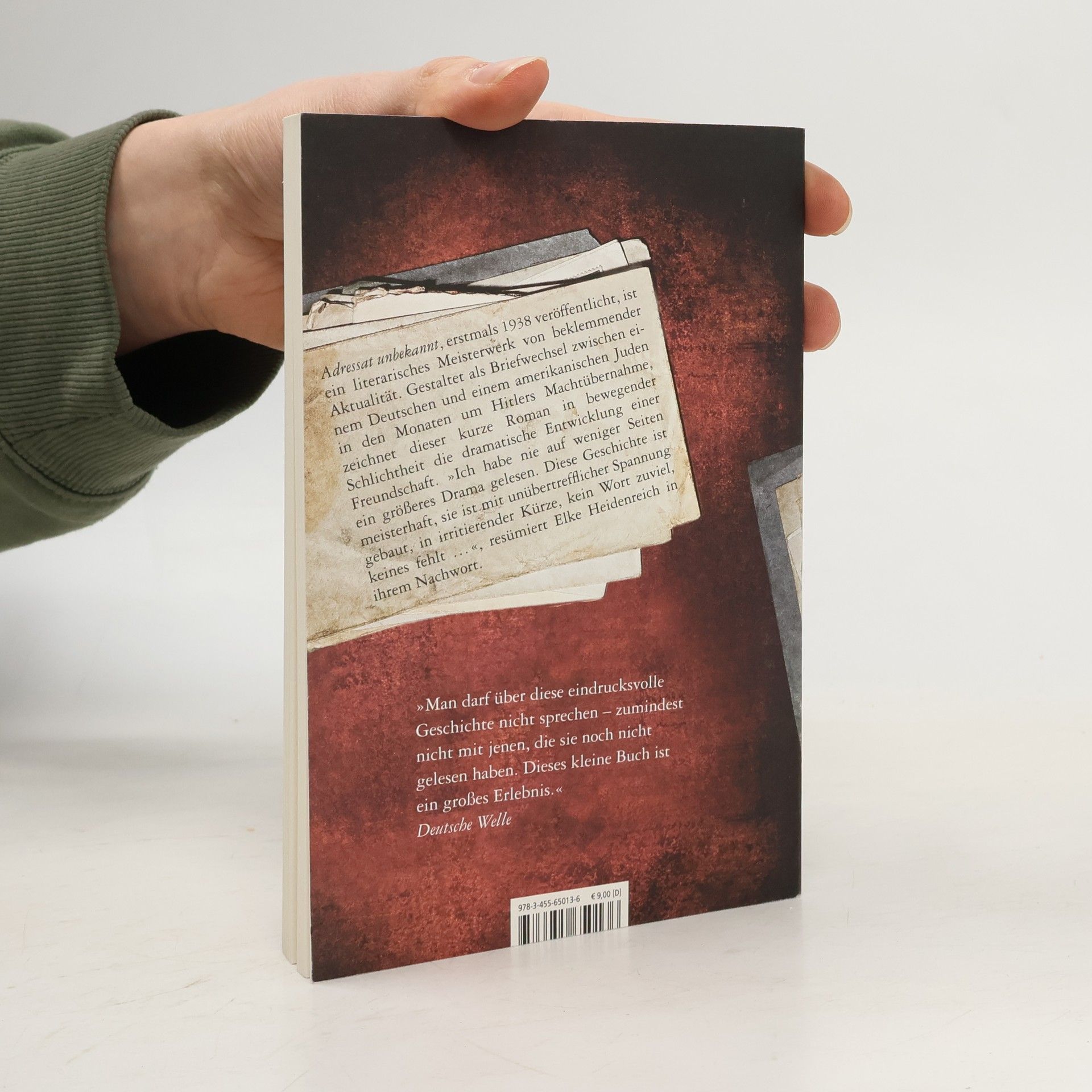 Der Deutsche Martin Schulse und der amerikanische Jude Max Eisenstein betreiben in den USA eine gut gehende Kunstgalerie. 1932 entscheidet sich Schulse, mit seiner Familie nach Deutschland zurückzukehren. Eisenstein betreibt die gemeinsame Galerie in San Francisco weiter. Die beiden Männer bleiben in Kontakt und tauschen sich in ihren Briefen über Berufliches und Privates aus. Zunächst scheint die Freundschaft nicht unter der räumlichen Trennung zu leiden. Doch Schulse, der die politischen Entwicklungen in Deutschland anfangs noch kritisch betrachtete, entwickelt sich nach und nach zum bekennenden Nationalsozialisten. Adressat unbekannt, 1938 erstmals veröffentlicht, ist ein Buch von beklemmender Aktualität. Gestaltet als Briefwechsel zwischen einem Deutschen und einem amerikanischen Juden in den Monaten um Hitlers Machtübernahme, schildert dieses Meisterwerk die dramatische Entwicklung einer Freundschaft und die Geschichte einer bitterbösen Rache. »Ich habe nie auf weniger Seiten ein größeres Drama gelesen. Diese Geschichte ist meisterhaft, sie ist mit unübertrefflicher Spannung gebaut, in irritierender Kürze, kein Wort zuviel, keines fehlt ... Nie wurde das zersetzende Gift des Nationalsozialismus eindringlicher beschrieben«, resümiert Elke Heidenreich in ihrem Nachwort.