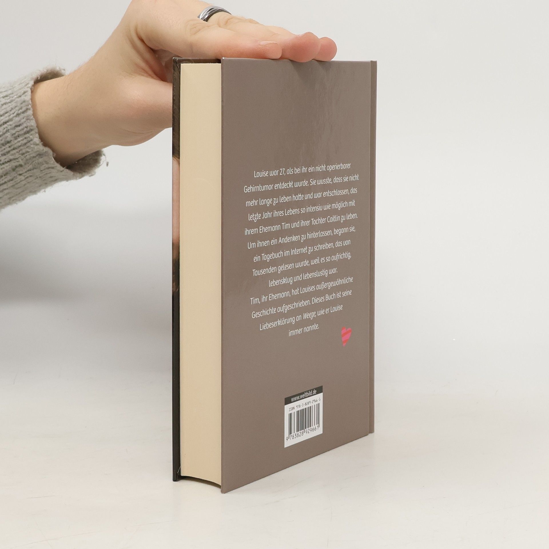 Louise war 27, als bei ihr ein nicht operierbarer Gehirntumor entdeckt wurde. Sie wusste, dass sie nicht mehr lange zu leben hatte und war entschlossen, das letzte Jahr ihres Leben so intensiv wie möglich mit ihrem Ehemann Tim und ihrer Tochter Caitlin zu leben. Um ihnen ein Andenken zu hinterlassen, begann sie, ein Tagebuch im Internet zu schreiben, das von Tausenden gelesen wurde, weil es so aufrichtig, lebensklug und lebenslustig war. Tim, ihr Ehemann, hat Louises Geschichte aufgeschrieben. Dieses Buch ist seine Liebeserklärung an „Weeze“, wie er Louise immer nannte.
