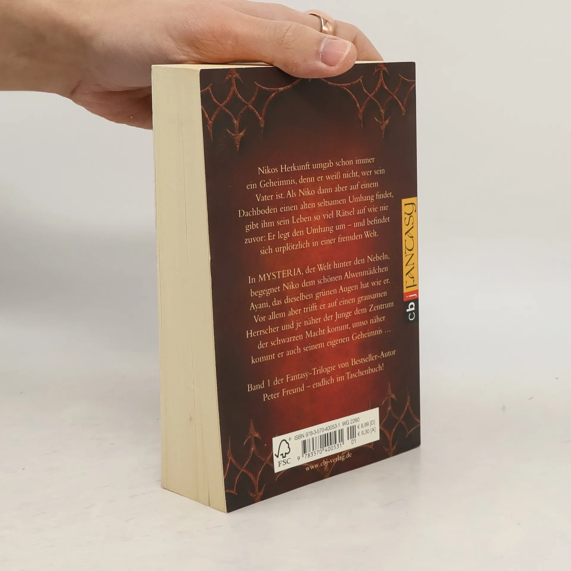 MYSTERIA – die neue spannende FantasyweltNikos Herkunft umgab schon immer ein Geheimnis. Als Niko dann aber auf einem Dachboden einen alten seltsamen Umhang findet, gibt ihm sein Leben so viele Rätsel auf wie nie zuvor: Er legt den Umhang um – und befindet sich urplötzlich in einer fremden Welt. In »Mysteria«, der Welt hinter den Nebeln, leben Menschen und andere Wesen, von denen Niko noch nie gehört hat. Hier begegnet Niko dem schönen Alwenmädchen Ayani, das dieselben grünen Augen hat wie er. Vor allem aber begegnet er in »Mysteria« einem grausamen Herrscher, der Niko und Ayani mit aller Gewalt jagen lässt. Je näher der Junge dem Zentrum der schwarzen Macht kommt, umso näher kommt er auch seinem eigenen Geheimnis.