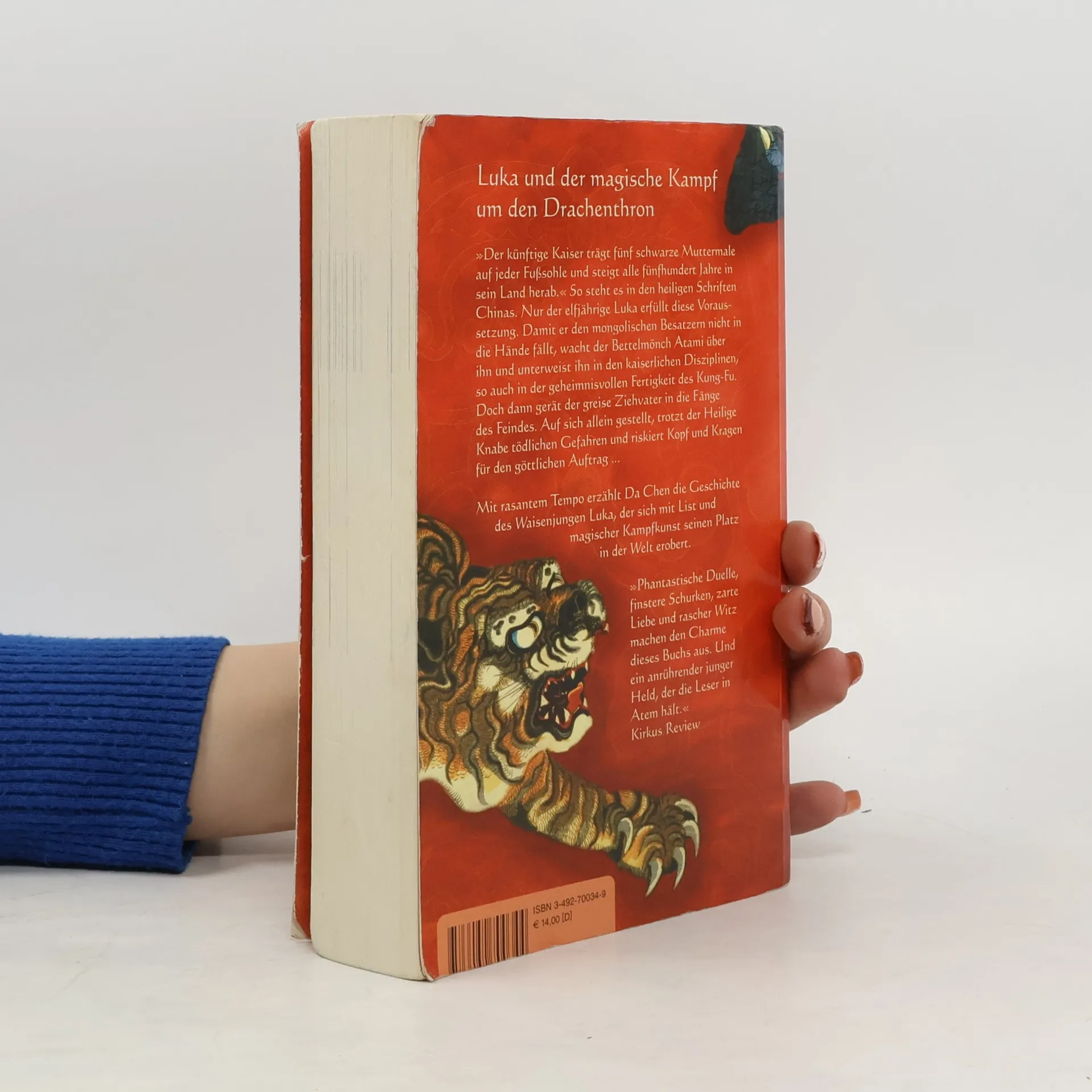»Der künftige Kaiser von China wird fünf schwarze Muttermale auf jeder Fußsohle tragen und alle fünfhundert Jahre in sein heiliges Land herabsteigen.« So steht es in den Schriften, und nur der elfjährige Waisenjunge Luka erfüllt diese Voraussetzung. Um den grausamen Besatzern des Reichs der Mitte, den Mogo-Invasoren, nicht in die Hände zu fallen, muß Luka seine Identität um jeden Preis geheimhalten. Seit er denken kann, ist der weise Bettelmönch Atami sein Ziehvater. Der wacht über Luka und hofft, daß sich die Weissagung eines Tages erfüllen wird. Auch in der uralten Kunst des Kung Fu unterweist er den künftigen Rächer seines Volkes. Als Atami von den gnadenlosen Feinden gefangengenommen wird, geht Luka seinen Weg allein weiter. Bevor er den Drachenthron für sich beanspruchen kann, fordern zahllose tödliche Gefahren seinen Mut und seine Klugheit heraus...