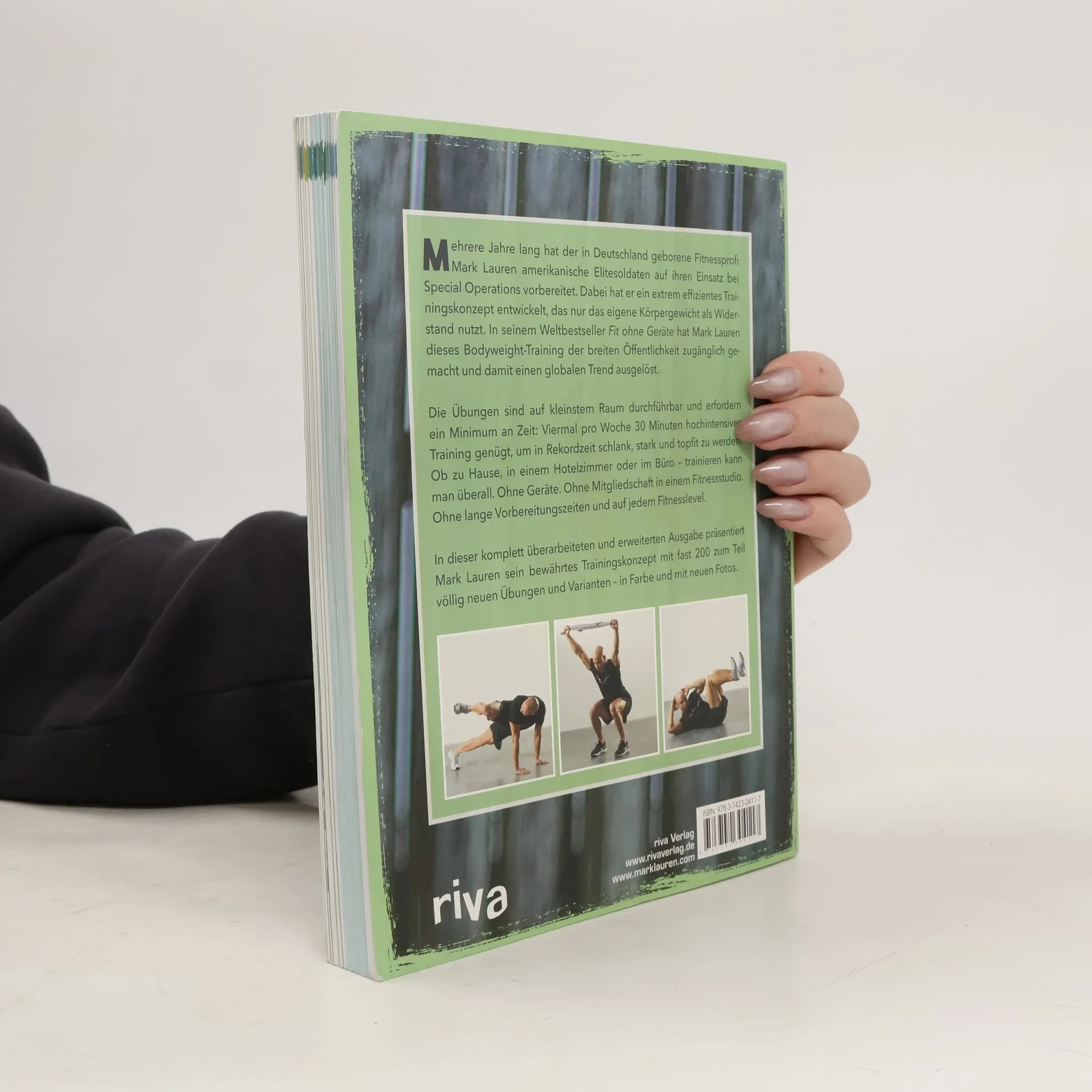 Mit seinem Weltbestseller Fit ohne Geräte, der in 12 Sprachen erschien und sich weltweit millionenfach verkaufte, wurde der ehemalige Militärausbilder Mark Lauren quasi über Nacht zu einer Fitnessikone. Mehrere Jahre lang hatte der in Deutschland geborene Fitnessprofi amerikanische Elitesoldaten auf ihren Einsatz bei Special Operations vorbereitet. Dabei hat er ein extrem effizientes Trainingskonzept entwickelt, das nur das eigene Körpergewicht als Widerstand nutzt. Die Übungen sind auf kleinstem Raum durchführbar und erfordern ein Minimum an Zeit: Viermal pro Woche 30 Minuten hochintensiv trainieren genügt, um in Rekordzeit schlank, stark und topfit zu werden. Dieses Trainingskonzept erwies sich als perfekt für die heutige Zeit und hat einen riesigen weltweiten Trend ausgelöst: das Bodyweight-Training. Ob zu Hause, in einem Hotelzimmer oder im Büro – trainieren kann man überall. Ohne Geräte. Ohne Mitgliedschaft in einem Fitnessstudio. Auch Vorbereitungszeit ist nicht nötig, dieses Buch genügt. Die Bibel des Bodyweight-Trainings erscheint nun in überarbeiteter Neuausgabe – in Farbe, mit völlig neuen Fotos, überarbeitetem Text und Layout.