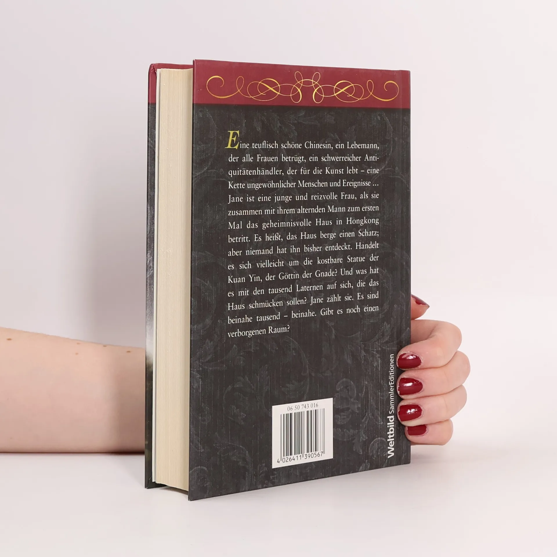 Jane ist bereits eine junge Ehefrau und Mutter, als sie mit ihrem alternden Mann und ihrem kleinen Sohn zum erstenmal in Hongkong das geheimnisvolle "Haus der tausend Laternen" betritt. Es heißt, das Haus berge einen Schatz, doch niemand hat ihn bisher entdeckt. Ist es die legendäre, unermesslich kostbare Statue der Göttin Kuan Yin? Und was hat es mit den zahllosen Laternen auf sich, die das Haus schmücken? Jane zählt sie – es sind nur knapp eintausend. Wo sind die fehlenden Laternen geblieben? Gibt es noch einen verborgenen Raum in diesem geheimnisvollen Haus? Als ihr Mann plötzlich stirbt, ist Jane eine reiche Witwe, und gleich drei Männer umwerben sie. Doch dann wird sie von einem merkwürdigen Leiden befallen. Etwas bedroht sie und trachtet ihr nach dem Leben. Wer – oder was – steckt dahinter?