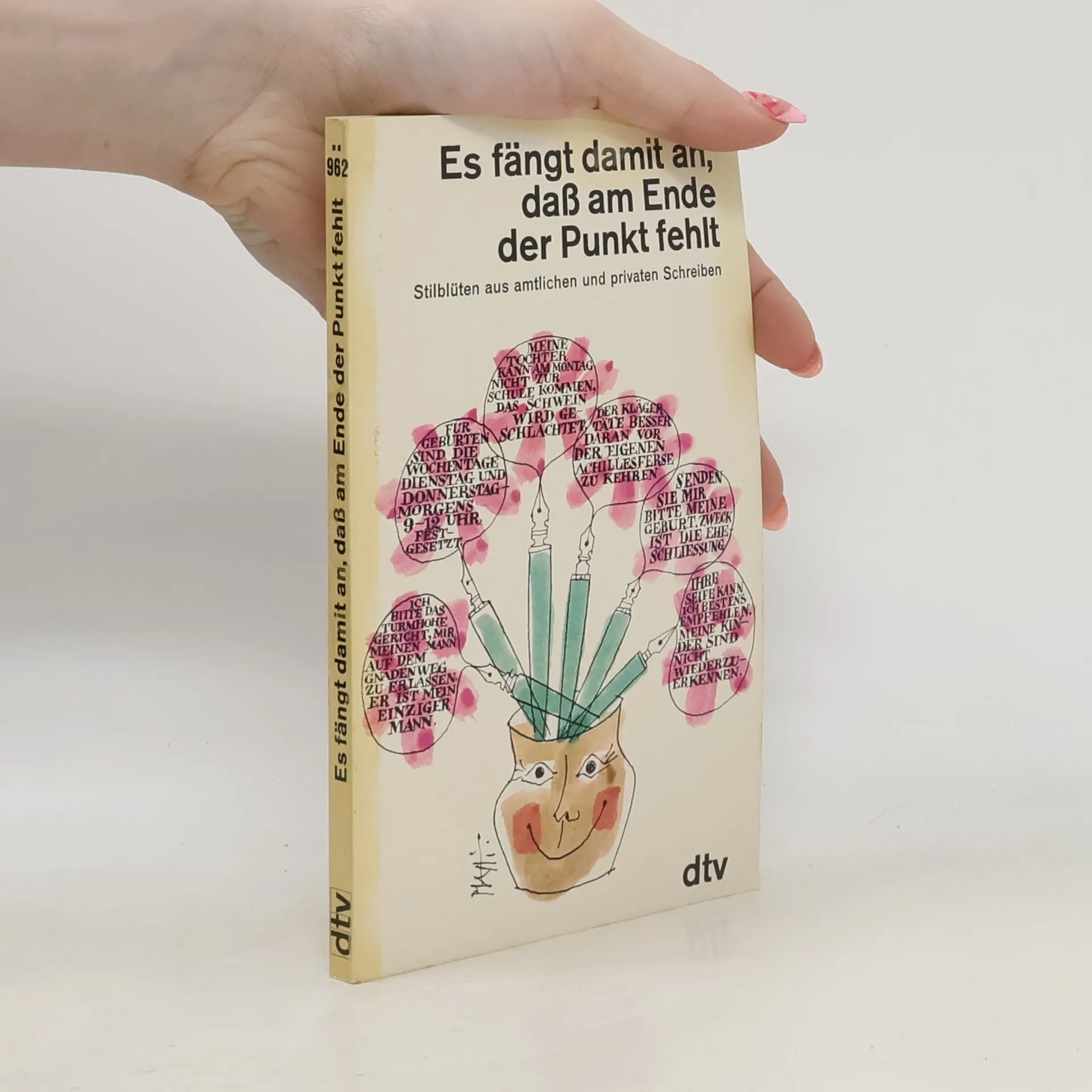 Natürlich könnte man anhand dieser unfreiwillig komischen Verlautbarungen eine sprachkritische Studie, eine Stilkunde mit negativen Beispielen schreiben. Aber das hieße denn doch, den Spaß an diesen herrlichen Stilblüten unnötig einzuschränken. Sie sprechen ohnehin für sich. Aus einer Fülle von amtlichen Schreiben, aus Polizeiberichten, Schulaufsätzen, privaten Briefen und Leserzuschriften haben die Herausgeber in jahrelanger Sammlerarbeit die lustigsten sprachlichen und gedanklichen Kurzschlüsse herausgesucht. Eine Pointe ist schöner als die andere. Hier nur ein Beispiel: "Ich bitte das turmhohe Gericht, mir meinen Mann auf dem Gnadenwege zu erlassen. Er ist mein einziger Mann." Karl Valentin läßt grüßen.