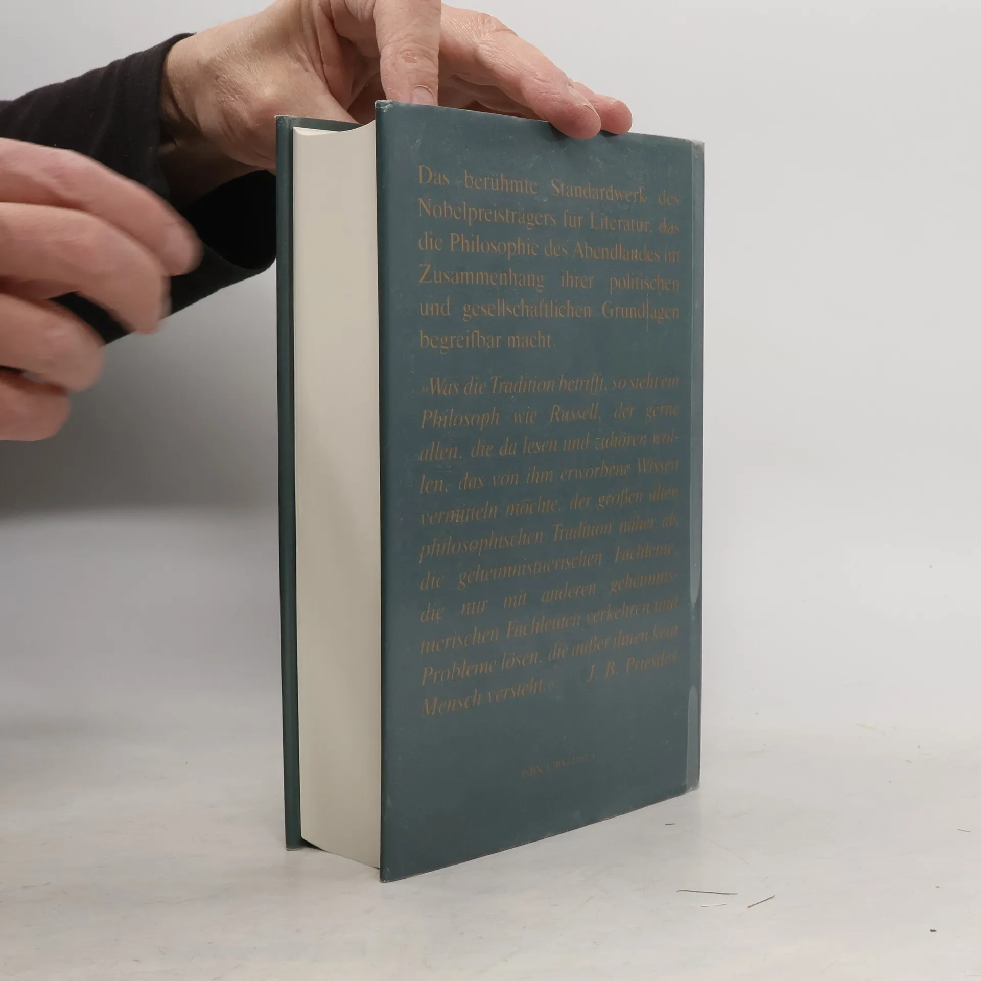 In seinem Klassiker der Philosophiegeschichte beherrscht Russell es philosophische Ideen verständlich darzustellen. Seine Ausführungen positioniert er im Kontext der politischen und gesellschaftlichen Zustände. Er erzählt von Denkern der Antike und der mittelalterlichen Scholastik, der Philosophie der Neuzeit und von den großen Philosophen des 19. und 20. Jahrhunderts. Ein bis heute unübertroffenes Meisterwerk für jeden zu empfehlen, der die abendländische Philosophie kennenlernen und auch verstehen will. «Das Buch ist als erste Einführung in die Philosophie anhand der Geschichte nicht zu überbieten; Voltaire hätte es nicht besser machen können.» Frankfurter Allgemeine Zeitung
