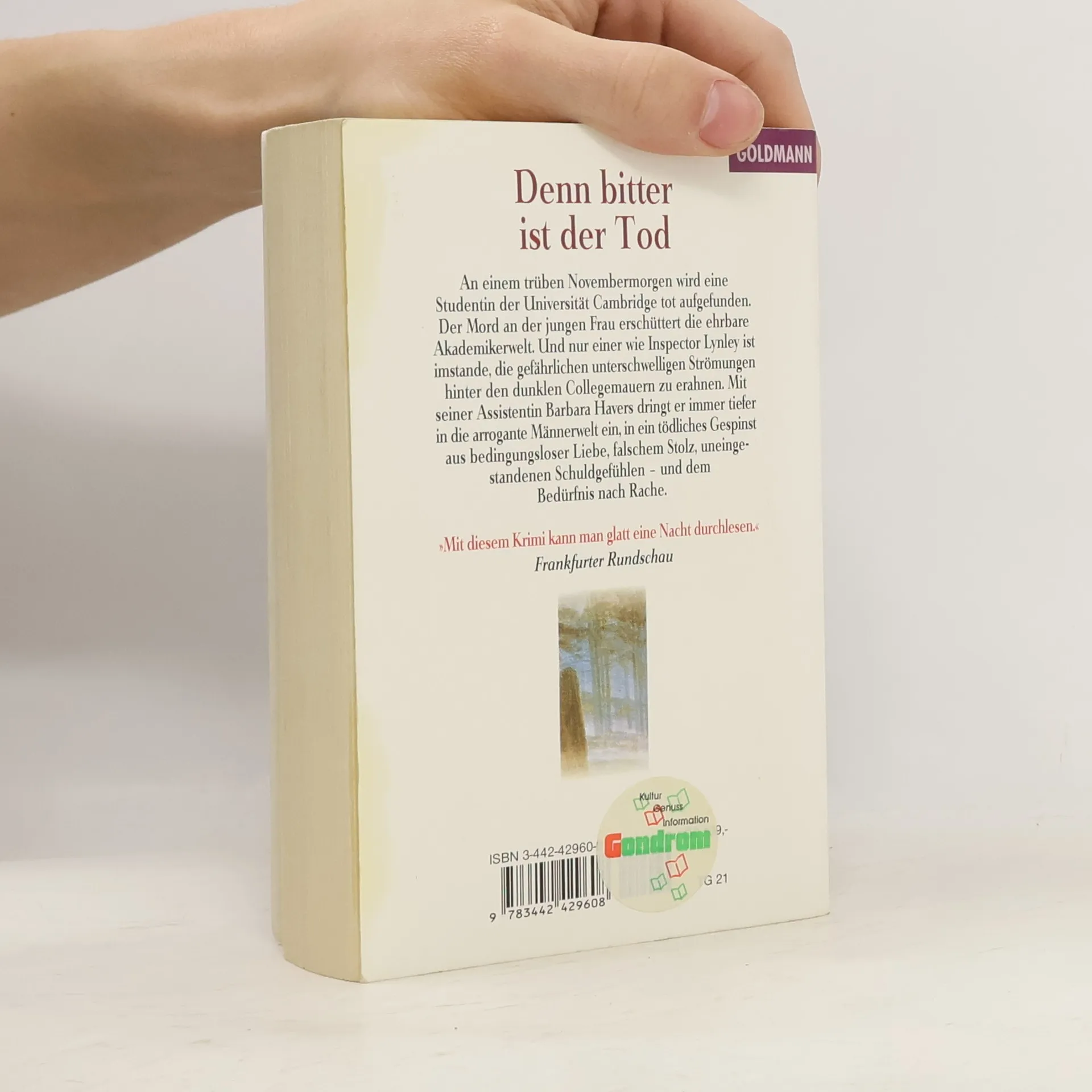 Inspector Lynleys fünfter Fall führt ihn an die ehrwürdige Universität Cambridge. Eine Studentin wurde ermordet und ihr Tod erscheint zunächst rätselhaft. Doch je tiefer Lynley und seine Assistentin in den Fall eindringen, um so dichter wird das Geflecht aus falschem Stolz, uneingestander Schuld und bedingungsloser Liebe in einer akademischen Männerwelt, in der Frauen einen schweren Stand haben und bisweilen in Gefahr geraten.