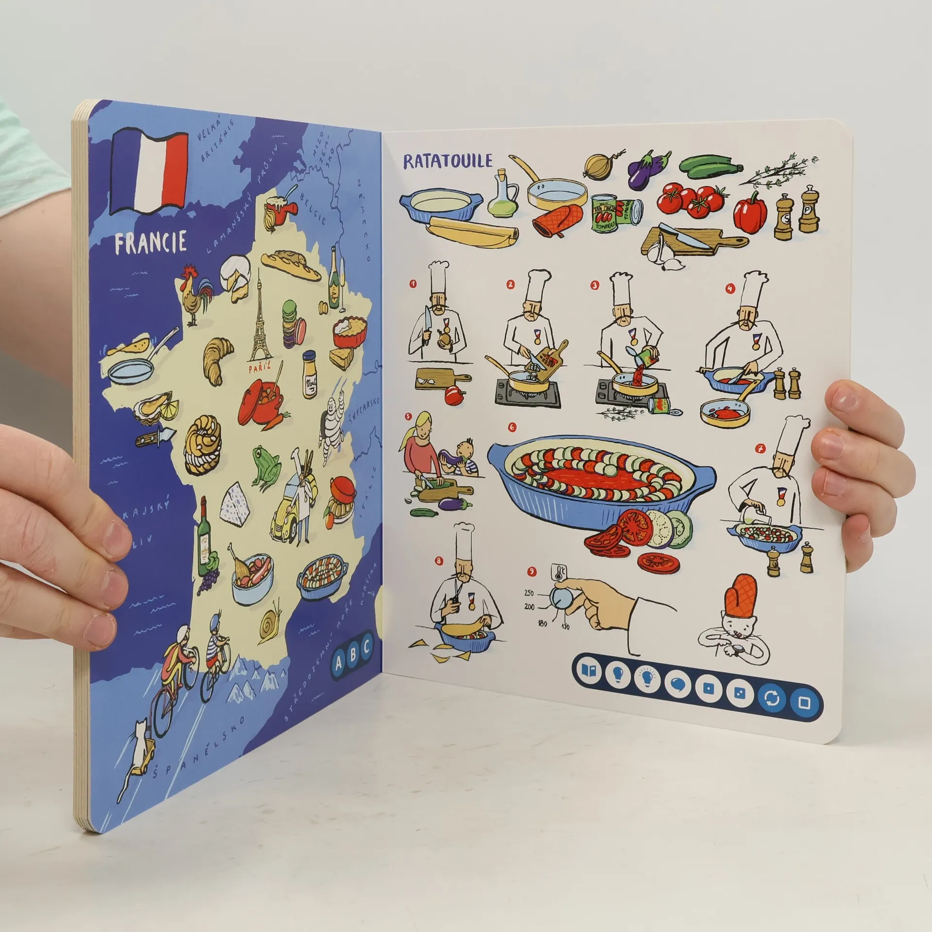 Interaktivní kniha Evropa na talíři z edice Kouzelné čtení je určená pro děti od 6 do 12 let, které zavede do kuchyní nejznámějších evropských zemí a představí jim typické místní pokrmy. V knize nechybí barevné ilustrace, zajímavé dialogy ani vědomostní kvízy na ověření vašich znalostí. Sourozenci Laura a Oliver milují cestování. Proto se vydali na cestu po evropských zemích, do kterých je pozvali jejich kamarádi šéfkuchaři. Přidejte se k nim a zjistíte, na čem si pochutnávají v Itálii, Francii, Španělsku, Velké Británii, Švédsku, Maďarsku nebo Řecku. Navíc si s nimi můžete jejich nejoblíbenější recepty i uvařit. Knížku plnou jídla, vtipu a cestování pro vás připravila zkušená rodičovská a foodblogerská dvojka Kuba a Blanka.