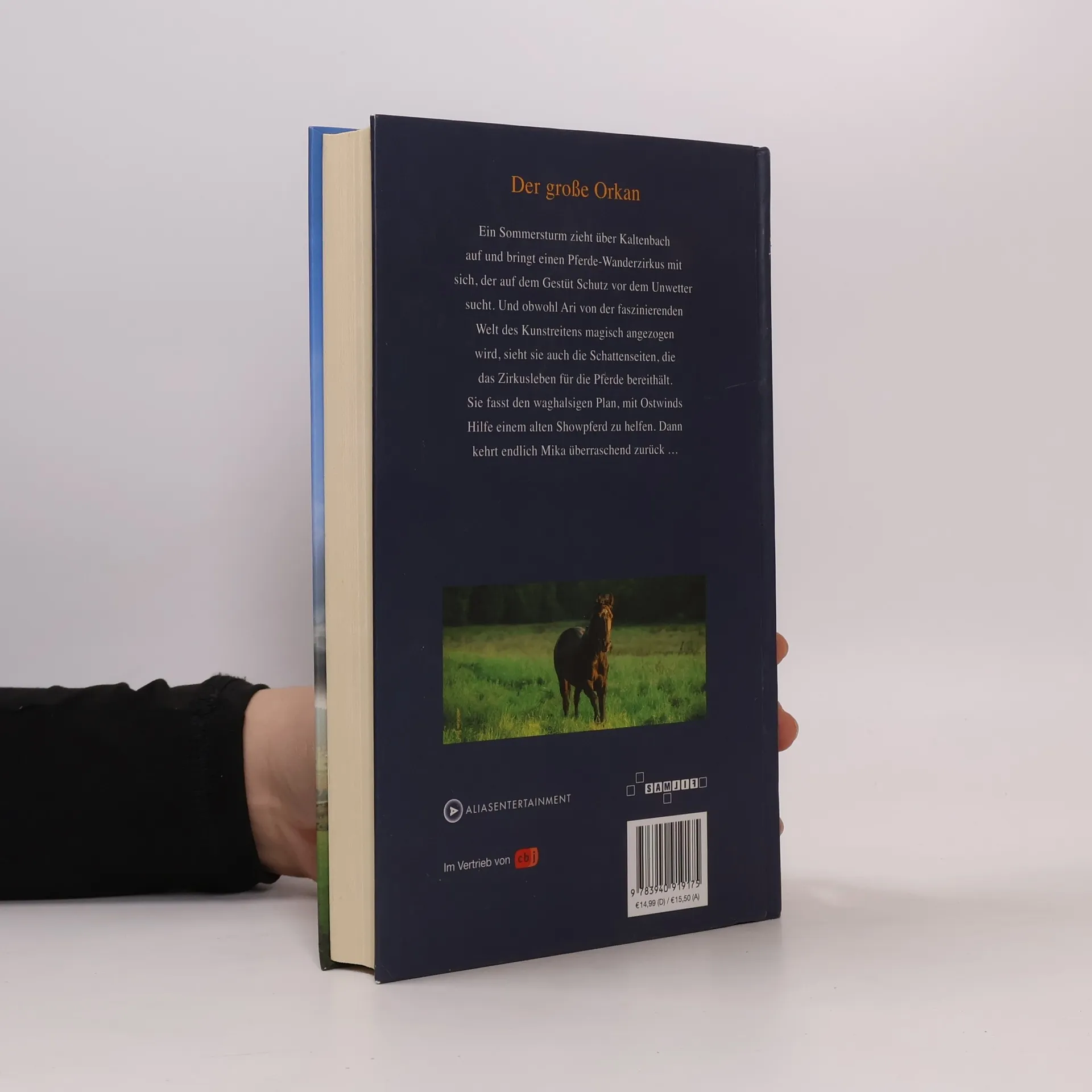Der große Orkan Ein Sommersturm zieht über Kaltenbach auf und bringt einen Pferde-Wanderzirkus mit sich, der auf dem Gestüt Schutz vor dem Unwetter sucht. Und obwohl Ari von der faszinierenden Welt des Kunstreitens magisch angezogen wird, sieht sie auch die Schattenseiten, die das Zirkusleben für die Pferde bereit hält. Mit Ostwinds Hilfe fasst sie den waghalsigen Plan, einem alten Showpferd zu helfen – dann kehrt endlich Mika überraschend zurück ...