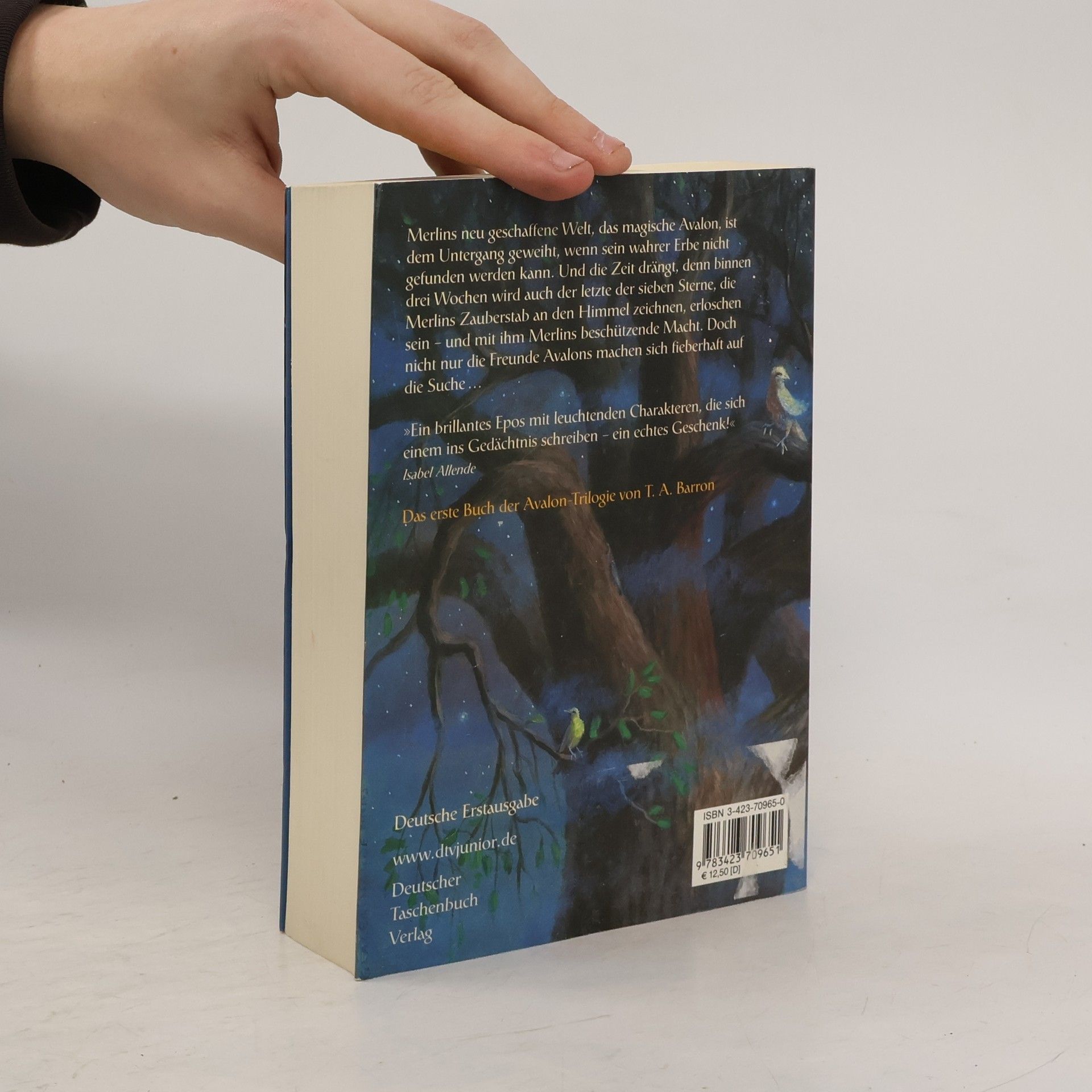 Aus dem Samen, den Merlin einst in die Erde des untergehenden Fincayras setzte, wuchs ein mächtiger Baum und mit ihm eine neue Welt: das magische Avalon. In seinen sieben ausgedehnten Wurzelreichen leben die verschiedensten Geschöpfe in Frieden und Harmonie. Gäbe es da nicht die düstere Prophezeiung der Herrin vom See, nach der in einem sternenlosen Jahr ein Kind geboren werde, von dem 17 Jahre später große Gefahr für das ganze Reich ausgehe. Als sich die Anzeichen mehren, dass sich die Vorhersage erfüllen wird, machen sich drei ungewöhnliche Jugendliche auf die Suche nach dem Ursprung des Unglücks: die freiheitsliebende Elli, eine ehemalige Sklavin und nun angehende Priesterin, Tamwyn, ein heimatloser Waldläufer und Sohn eines Feuerwesens, sowie sein Ziehbruder Scree, der ein sonderbares Geheimnis mit sich zu tragen scheint. Avalons Zukunft liegt in ihren Händen - denn sie ahnen, dass einer von ihnen 'das Kind der dunklen Prophezeiung' ist, ein anderer 'der wahre Erbe Merlins' und damit Avalons einziger Hoffnungsträger.
