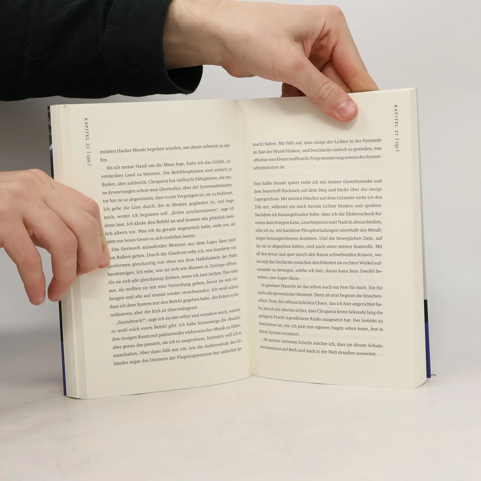 Carl Hobbes hat geniale Hackerfähigkeiten, seine Freundin Beth ist eine raffinierte Goldbarrendiebin. Zusammen sind sie untergetaucht, denn sie werden von der CIA und der al-Qaida gejagt. Die einen wollen sie lebend, die anderen tot. Um zu überleben, schleust sich Carl in das Industrielager Sphinx Cargo ein. Dort bewacht der Supercomputer Cleo wertvolle Kunstgegenstände – und bald auch Carl. Doch Beth’ Hunger nach Gold bringt die beiden in große Gefahr ...