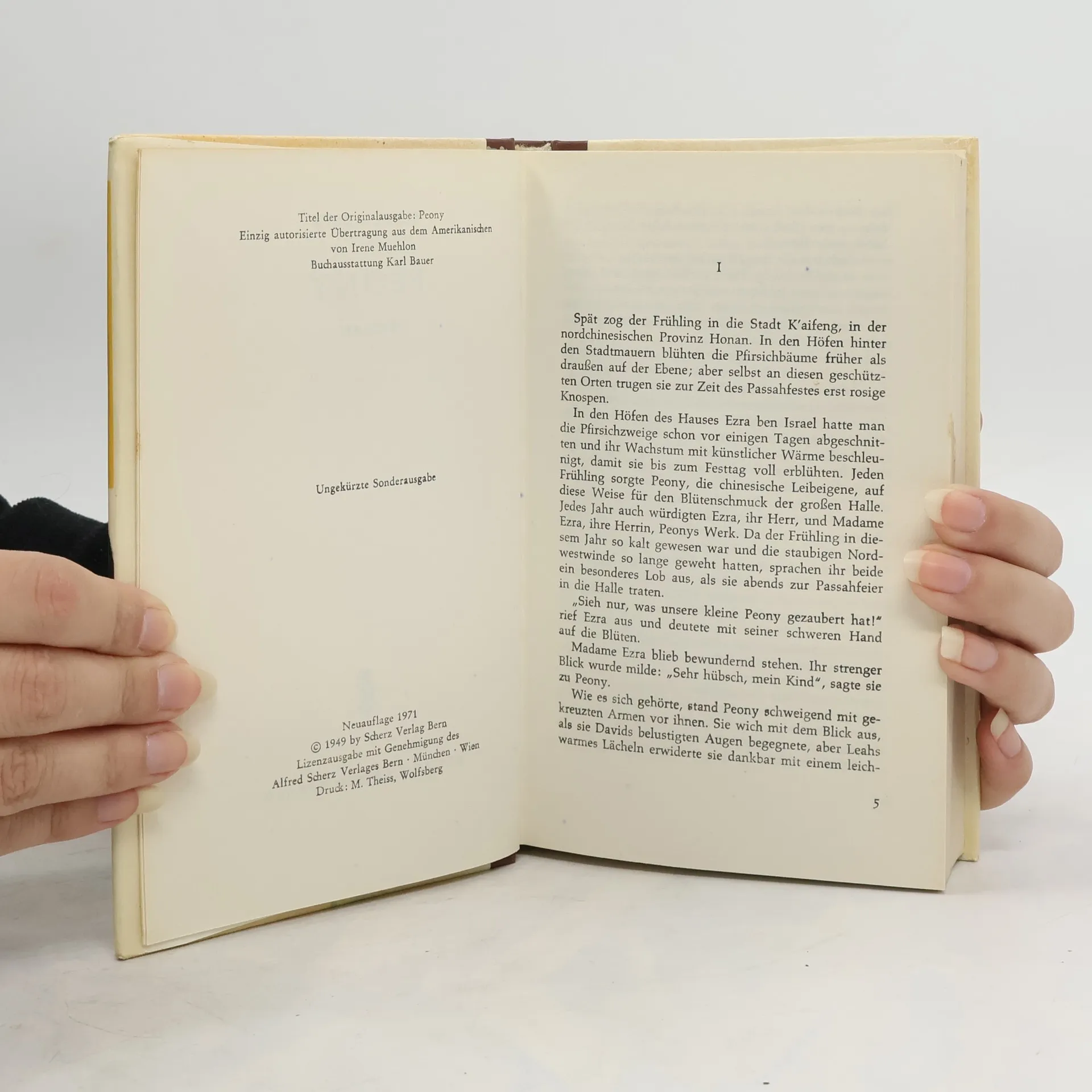 Als Kind von ihrer Familie an einen vornehmen jüdischen Kaufmann verkauft, um dessen Sohn David Spielgefährtin und Dienerin zu sein, muss Peony den ihr angemessenen Platz in dem großen Haushalt mit all seinen ihr unbekannten religiösen Tradition finden. Während ihres Heranwachsens vom Mädchen zur jungen Frau verliebt sie sich zu alledem auch noch in ihren jungen Herrn. Doch Peony weiß, dass die strengen fremdländischen Sitten eine Heirat zwischen Herrn und Leibeigener nie zulassen würden, vor allem da Davids Mutter bereits eine jüdische Braut für ihren Sohn auserwählt hat. Nun muss die junge Chinesin zu List und Tücke greifen, um sowohl ihr eigenes als auch Davids Leben zu der ihnen vorbestimmten Erfüllung zu führen.