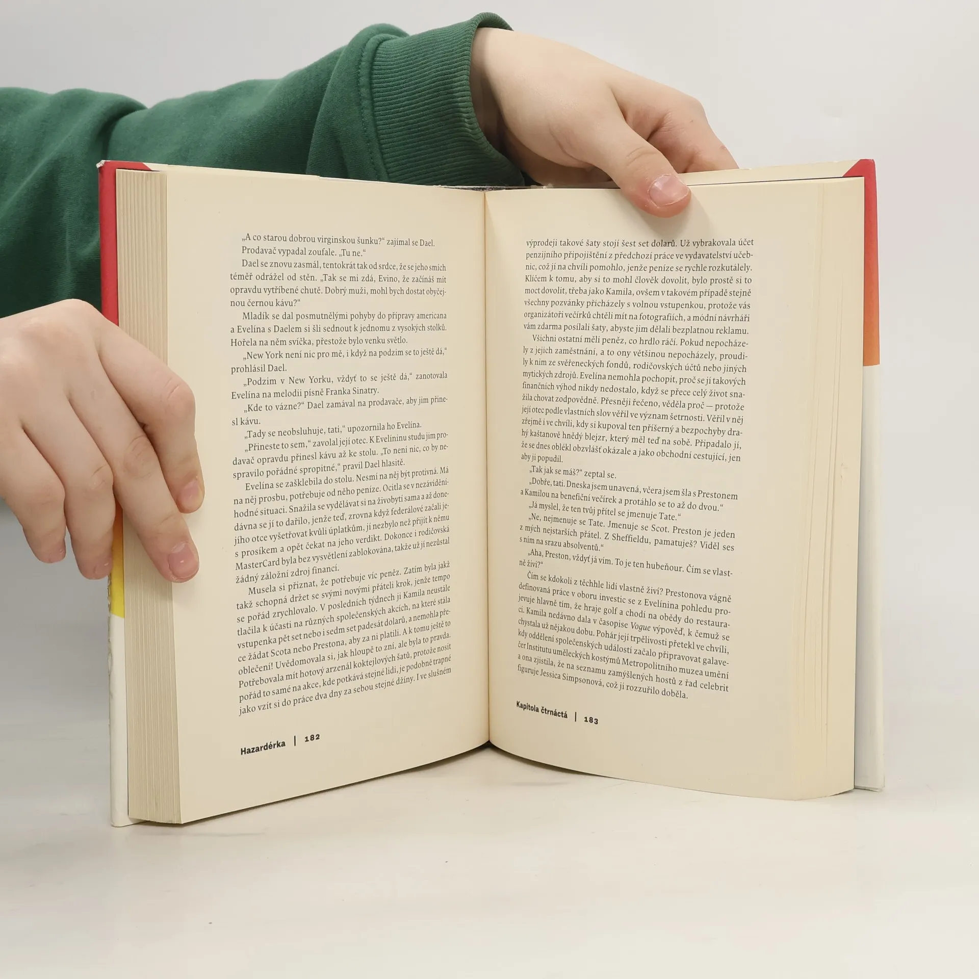 Román Stephanie Cliffordové, novinářky New York Times, nám s fascinujícími detaily umožňuje nahlédnout do „zlaté klece” mladých newyorských finančníků a bankovních makléřů, kteří se díky kapitálu svých rodičů, elitním školám a konexím vezou na vlně spekulativních báječných zisků – v době, kdy jen škarohlídi rozpoznávají příznaky krize, jež zanedlouho zasáhne celou Ameriku. Hrdinka Evelína pochází ze skromnějších poměrů, ale díky své ambiciózní matce absolvovala elitní školu a nyní využije všech prostředků, aby pronikla do oslnivého života, který dosud sledovala jenom zpovzdálí. Řečeno s Hemingwayem je oslněna romantickou bázní ze superbohatých, a tak napodobuje snobská tekutá pravidla, slangové výrazy a manýry „aristokratických starých peněz”. Jenomže kam až dosahuje magická hypnotizující moc muzikálových příběhů? Evelína se musí v mnohém zapřít – co se jí ale ukáže, jestli projde zrcadlem a ohlédne se?