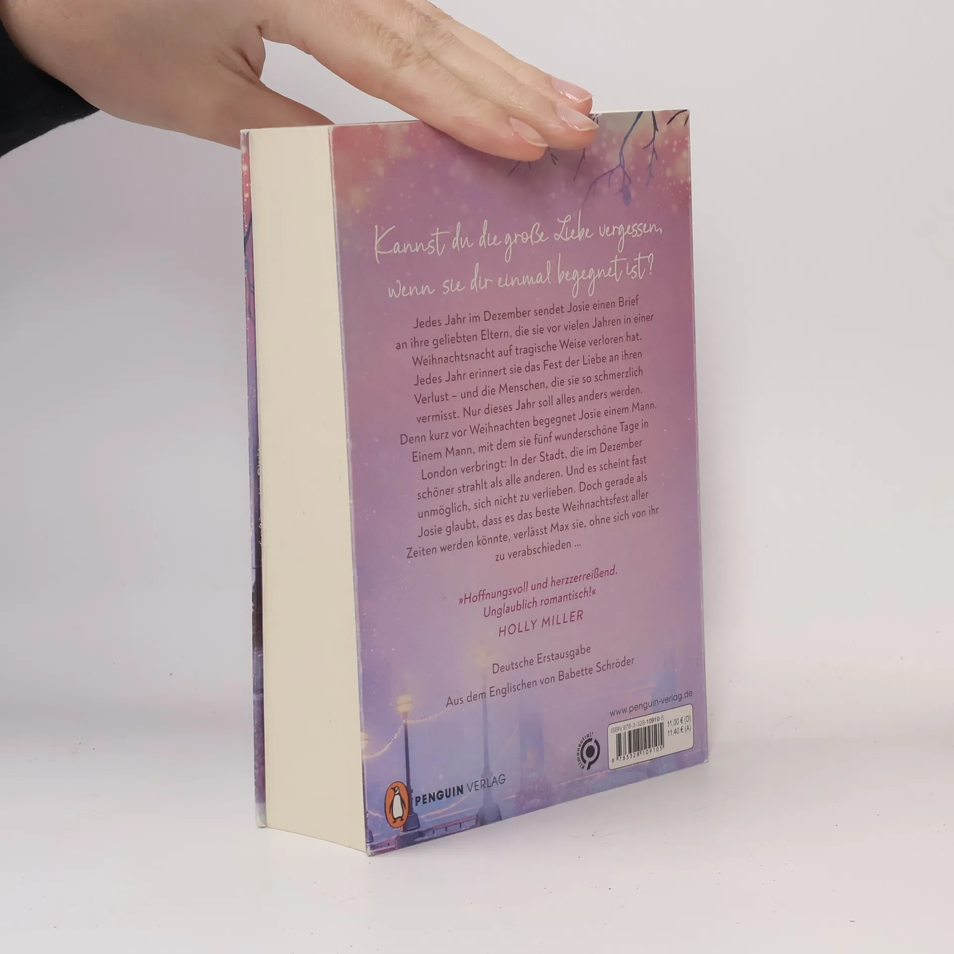 Kannst du die große Liebe vergessen, wenn sie dir einmal begegnet ist? Jedes Jahr im Dezember sendet Josie einen Brief an ihre geliebten Eltern, die sie vor vielen Jahren in einer Weihnachtsnacht auf tragische Weise verloren hat. Jedes Jahr erinnert sie das Fest der Liebe an ihren Verlust – und die Menschen, die sie so schmerzlich vermisst. Nur dieses Jahr soll alles anders werden. Denn kurz vor Weihnachten begegnet Josie einem Mann. Einem Mann, mit dem sie fünf wunderschöne Tage in London verbringt: In der Stadt, die im Dezember schöner strahlt als alle anderen. Und es scheint fast unmöglich, sich nicht zu verlieben. Doch gerade als Josie glaubt, dass es das beste Weihnachtsfest aller Zeiten werden könnte, verlässt Max sie, ohne sich von ihr zu verabschieden … Ein Roman, so anrührend und humorvoll wie Notting Hill und Vier Hochzeiten und ein Todesfall . Die ganz große Liebe und der ganz große Schmerz liegen oft nah beieinander. Ein hochemotionaler Liebesroman und Garant für eine Achterbahn der Gefühle. »Ein herzergreifendes, lebensbejahendes Buch, das sich wie eine Umarmung anfühlt.« Josie Silver