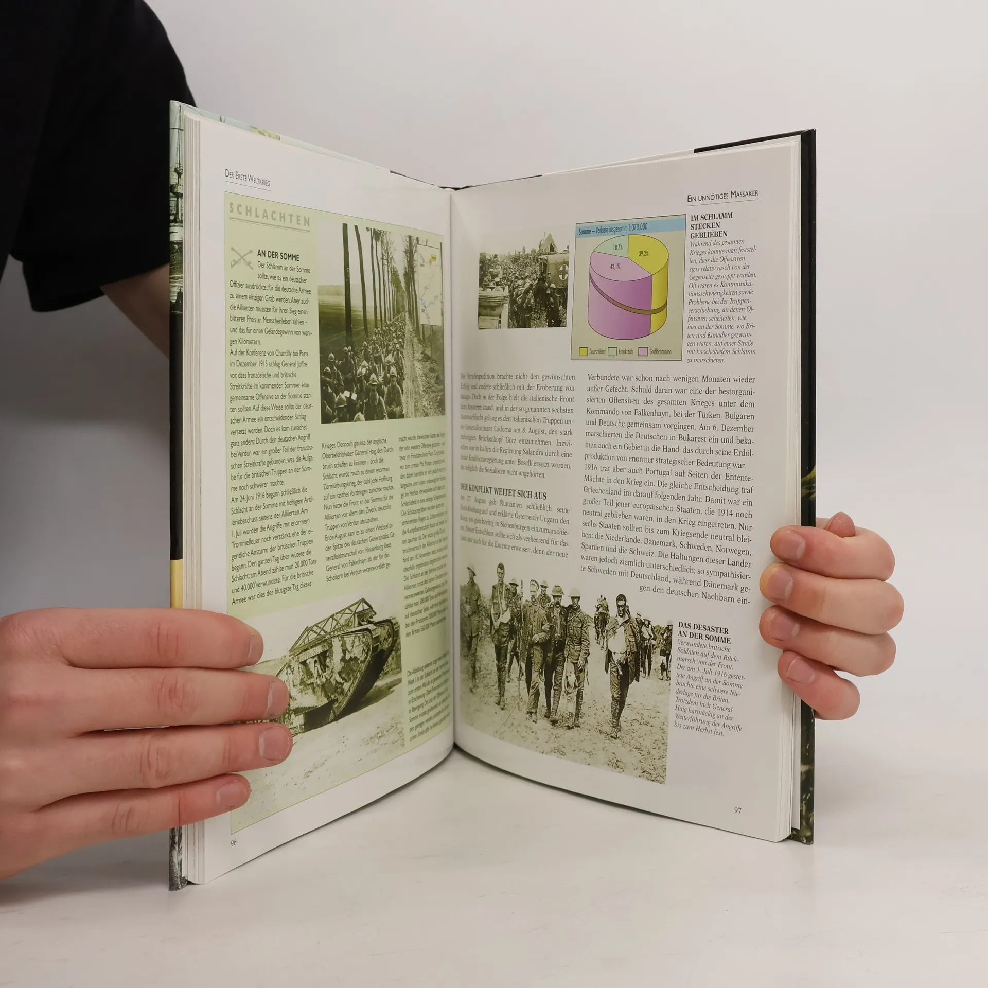 Am 28. Juni 1914 wurde Erzherzog Ferdinand in Saravejo ermordet, was den Beginn eines Krieges auslöste, der die Weltgeschichte grundlegend veränderte. Das Attentat führte zu einem Konflikt, an dem etwa 20 Staaten beteiligt waren, die rund 70 Millionen Soldaten mobilisierten. Die Opferzahlen waren erschreckend: neun Millionen Soldaten und eine Million Zivilisten verloren ihr Leben. Im Vergleich zu den kriegerischen Auseinandersetzungen des 19. Jahrhunderts nahm der Erste Weltkrieg völlig neue Dimensionen an. Es wurden Waffensysteme mit bisher unerreichter Zerstörungskraft entwickelt, und die Kämpfe fanden nicht nur zu Land und Wasser, sondern auch in der Luft und unter Wasser statt. Der Einsatz von Panzern brach den festgefahrenen Stellungskrieg auf, während schwere Geschütze und chemische Waffen die Zerstörung vervielfachten. Das Kriegsende führte zu grundlegenden politischen Veränderungen: Monarchien wurden in Republiken umgewandelt, in Russland fand eine bolschewikische Revolution statt, und sowohl die österreichisch-ungarische Monarchie als auch das Osmanische Reich zerbrachen. Dennoch brachte der Große Krieg keine dauerhafte Lösung der Konflikte, was Europa nur kurze Zeit später in einen noch verheerenderen Krieg führte.