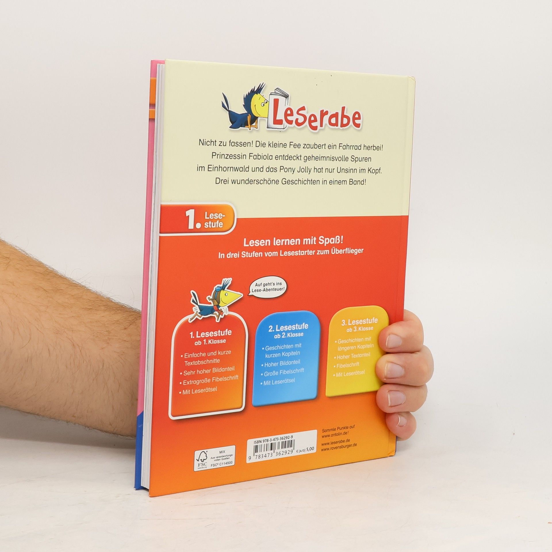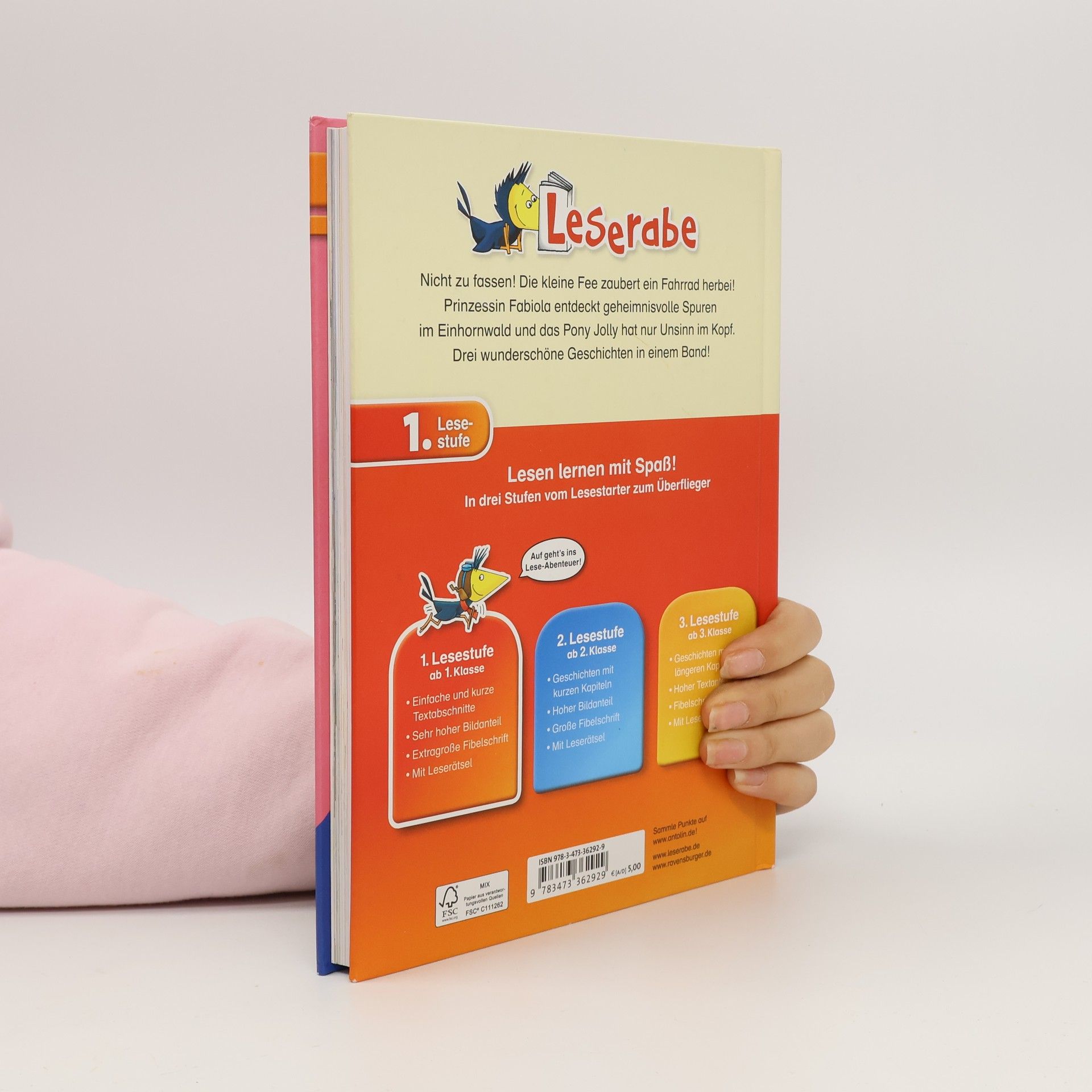 Prinzessin Fabiola entdeckt geheimnisvolle Spuren, die kleine Fee zaubert ein Fahrrad herbei und Marie fiebert dem großen Reitturnier entgegen. Drei zauberhafte Geschichten in einem Band! Lesen lernen wie im Flug! Die Kinderbücher der Reihe Leserabe - 1. Lesestufe wurden mit Pädagogen entwickelt und richten sich an Leseanfänger ab der 1. Klasse. Kurze Texte in großer Fibelschrift sichern erste Leseerfolge und steigern die Lesekompetenz von Mädchen und Jungen ab 6 Jahren. Empfohlen von Stiftung Lesen, gelistet bei Antolin. Weitere Informationen auf leserabe. de.