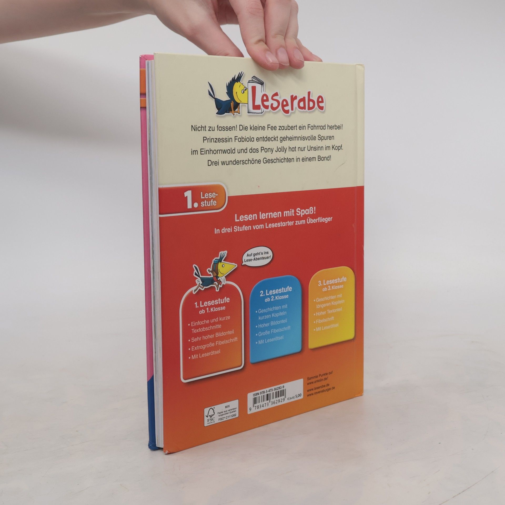 Prinzessin Fabiola entdeckt geheimnisvolle Spuren, die kleine Fee zaubert ein Fahrrad herbei und Marie fiebert dem großen Reitturnier entgegen. Drei zauberhafte Geschichten in einem Band! Lesen lernen wie im Flug! Die Kinderbücher der Reihe Leserabe - 1. Lesestufe wurden mit Pädagogen entwickelt und richten sich an Leseanfänger ab der 1. Klasse. Kurze Texte in großer Fibelschrift sichern erste Leseerfolge und steigern die Lesekompetenz von Mädchen und Jungen ab 6 Jahren. Empfohlen von Stiftung Lesen, gelistet bei Antolin. Weitere Informationen auf leserabe. de.