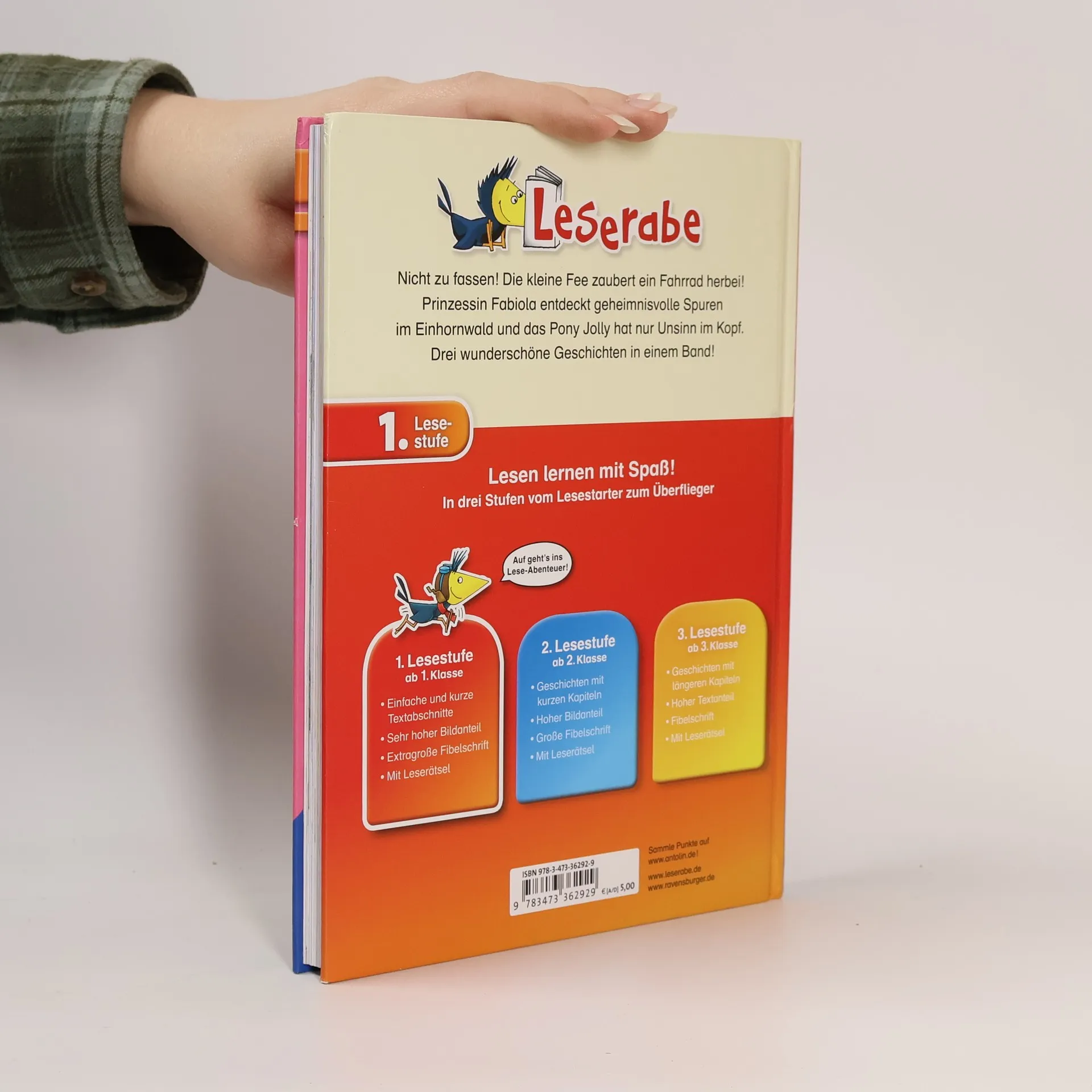 Prinzessin Fabiola entdeckt geheimnisvolle Spuren, die kleine Fee zaubert ein Fahrrad herbei und Marie fiebert dem großen Reitturnier entgegen. Drei zauberhafte Geschichten in einem Band! Lesen lernen wie im Flug! Die Kinderbücher der Reihe Leserabe - 1. Lesestufe wurden mit Pädagogen entwickelt und richten sich an Leseanfänger ab der 1. Klasse. Kurze Texte in großer Fibelschrift sichern erste Leseerfolge und steigern die Lesekompetenz von Mädchen und Jungen ab 6 Jahren. Empfohlen von Stiftung Lesen, gelistet bei Antolin. Weitere Informationen auf leserabe. de.