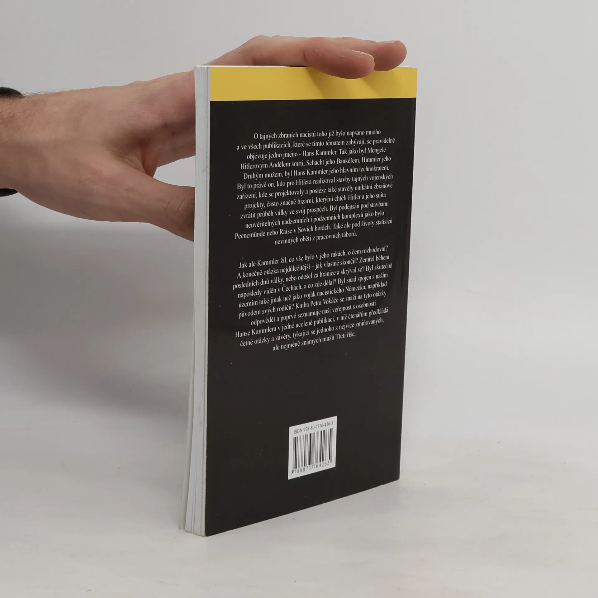 O tajných zbraních nacistů toho již bylo napsáno mnoho a ve všech publikacích, které se tímto tématem zabývají, se pravidelně objevuje jedno jméno - Hans Kammler. Tak jako byl Mengele Hitlerovým Andělem smrti, Schacht jeho Bankéřem, Himmler jeho Druhým mužem, byl Hans Kammler jeho hlavním technokratem. Byl to právě on, kdo pro Hitlera realizoval stavby tajných vojenských zařízení, kde se projektovaly a posléze také stavěly unikátní zbraňové projekty, často značně bizarní, kterými chtěli Hitler a jeho suita zvrátit průběh války ve svůj prospěch. Byl podepsán pod stavbami neuvěřitelných nadzemních i podzemních komplexů jako bylo Peenemünde nebo Raise v Sovích horách. Také ale pod životy statisíců nevinných obětí z pracovních táborů. Jak ale Kammler žil, co vše bylo v jeho rukách, o čem rozhodoval? A konečně otázka nejdůležitější – jak vlastně skončil? Zemřel během posledních dnů války, nebo odešel za hranice a skrýval se? Byl skutečně naposledy viděn v Čechách, a co zde dělal? Byl snad spojen s naším územím také jinak než jako voják nacistického Německa, například původem svých rodičů? Kniha Petra Vokáče se snaží na tyto otázky odpovědět a poprvé seznamuje naši veřejnost s osobností Hanse Kammlera v jedné ucelené publikaci, v níž čtenářům předkládá četné otázky a závěry, týkající se jednoho z nejvíce zmiňovaných, ale nejméně známých mužů Třetí říše.