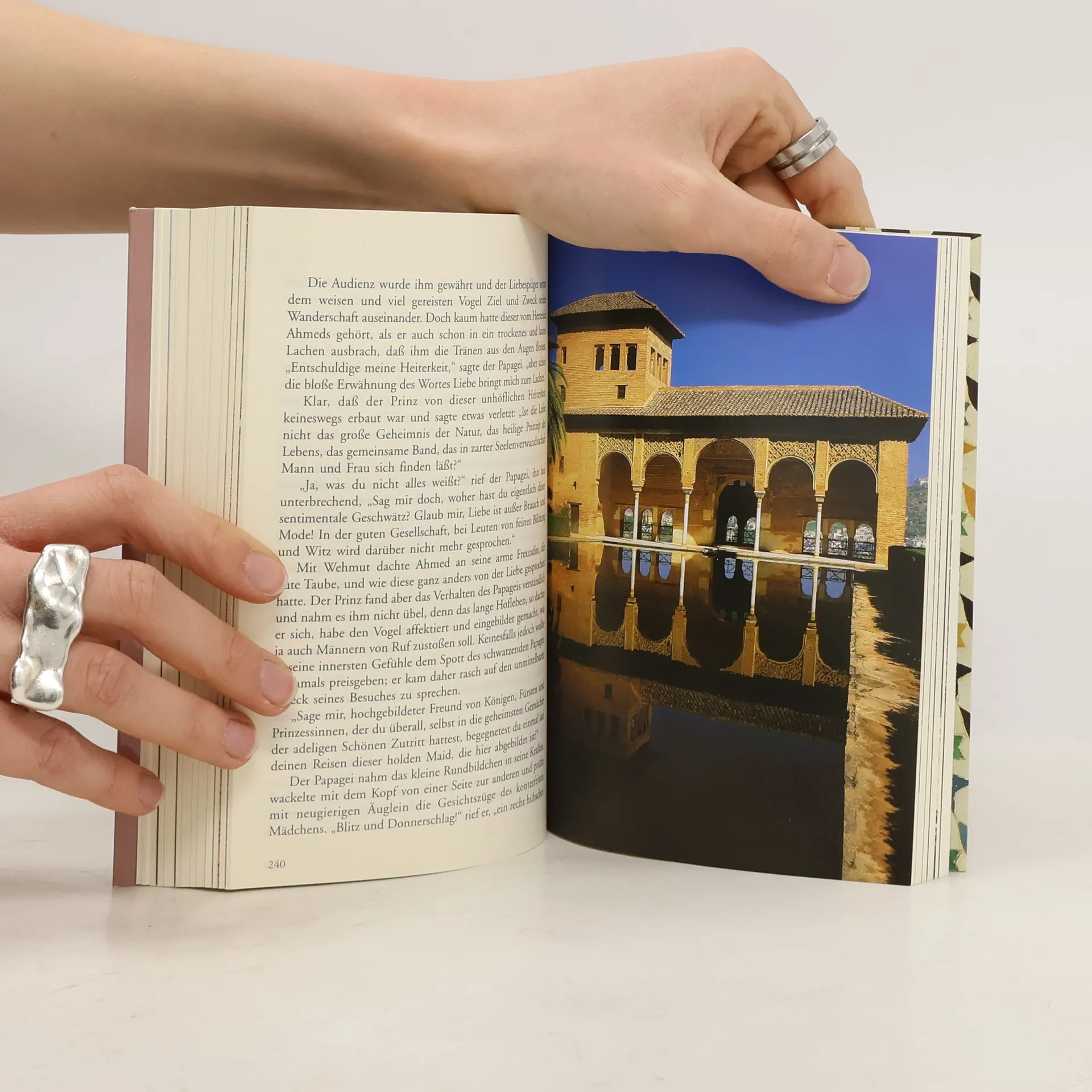 Die Alhambra ist das berühmteste Bauwerk Südspaniens und die einstige Stadtburg der letzten maurischen Herrscher in Al-Andalus. Vier Monate lang lebte dort 1829 der amerikanische Schriftsteller Washington Irving und beschrieb in berauschenden Farben das Land, die Stadt und den Palast, erzählte vom Leben seiner Bewohner, von ihren Geheimnissen und den Legenden vergangener Zeiten. Er schuf ein reiches und bezauberndes Porträt, das zur Wiederentdeckung und Restaurierung der damals schon verfallenden Burg und heute attraktivsten Sehenswürdigkeit Andalusiens wesentlich beitrug.