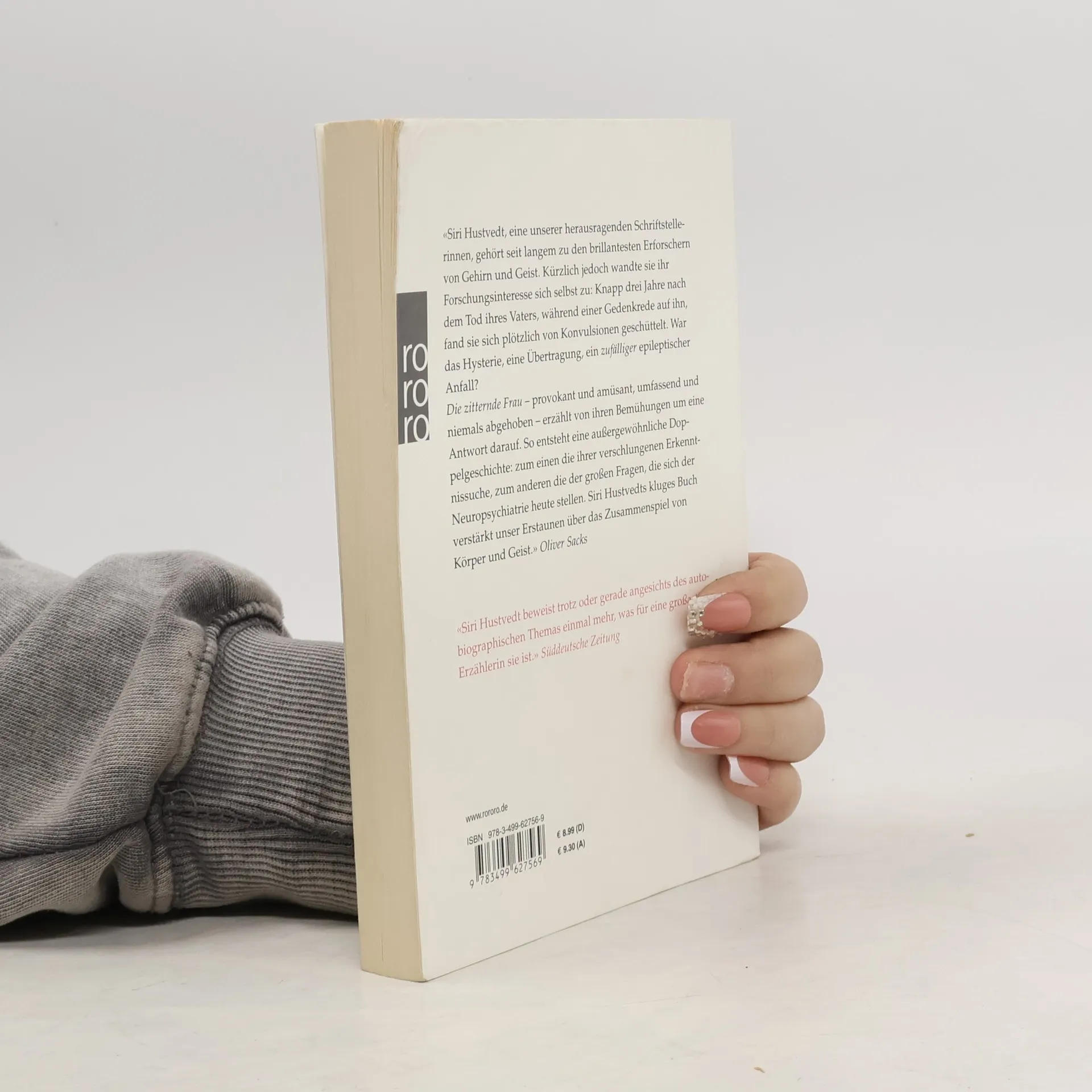 «Siri Hustvedt, eine unserer herausragenden Schriftstellerinnen, gehört seit langem zu den brillantesten Erforschern von Gehirn und Geist. Kürzlich jedoch wandte sie ihr Forschungsinteresse sich selbst zu: Knapp drei Jahre nach dem Tod ihres Vaters, während einer Gedenkrede auf ihn, fand sie sich plötzlich von Konvulsionen geschüttelt. War das Hysterie, eine Übertragung, ein zufälliger epileptischer Anfall? Die zitternde Frau – provokant und amüsant, umfassend und niemals abgehoben – erzählt von ihren Bemühungen um eine Antwort darauf. So entsteht eine außergewöhnliche Doppelgeschichte: zum einen die ihrer verschlungenen Erkenntnissuche, zum anderen die der großen Fragen, die sich der Neuropsychiatrie heute stellen. Siri Hustvedts kluges Buch verstärkt unser Erstaunen über das Zusammenspiel von Körper und Geist.» Oliver Sacks «Siri Hustvedt beweist trotz oder gerade angesichts des autobiographischen Themas einmal mehr, was für eine großartige Erzählerin sie ist.» Süddeutsche Zeitung