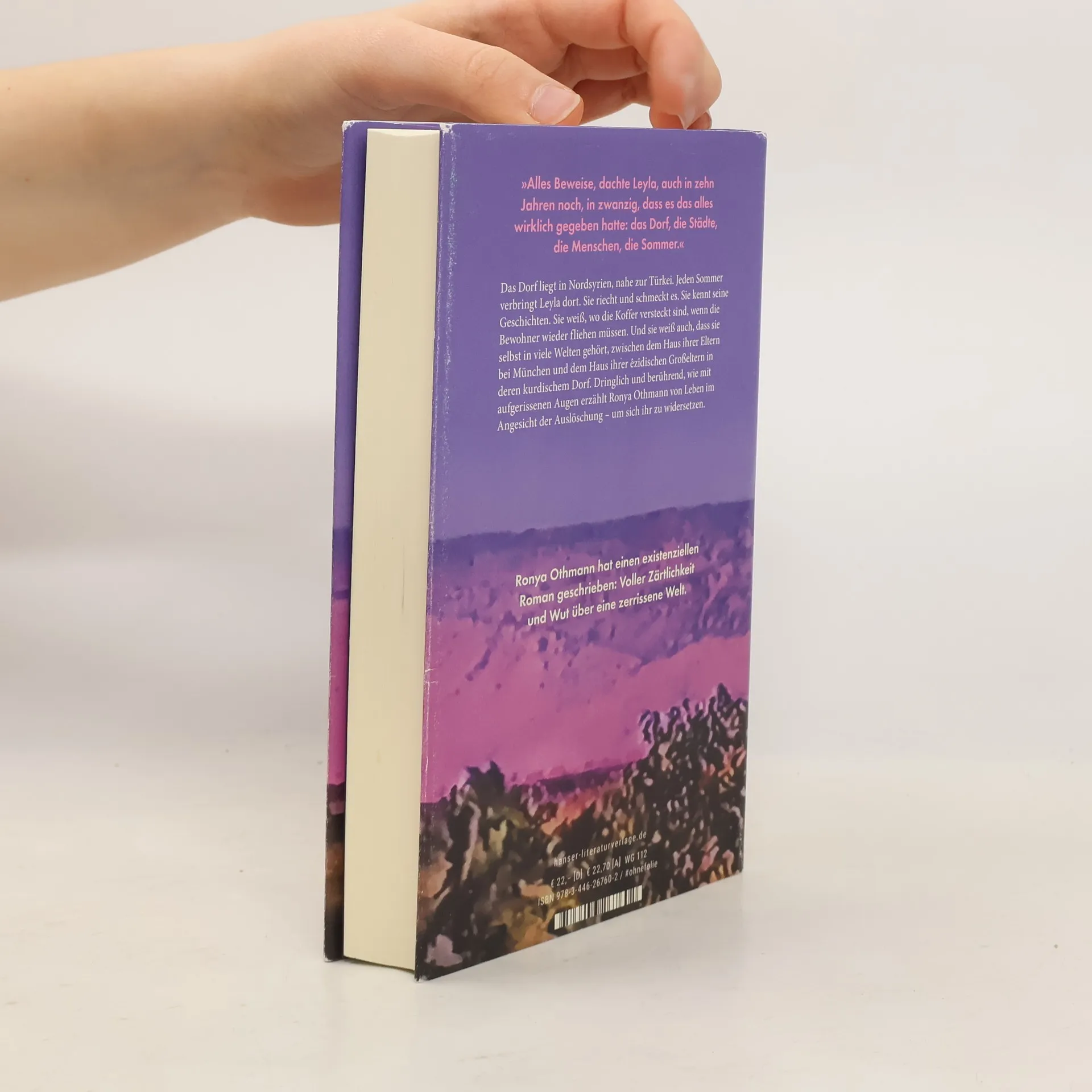 Leyla ist die Tochter einer Deutschen und eines jesidischen Kurden… Das ergreifende Debüt der Gewinnerin des Publikumspreises des Ingeborg-Bachmann-Wettbewerbs (2019) über das Dasein zwischen zwei Welten Das Dorf liegt in Nordsyrien, nahe zur Türkei. Jeden Sommer verbringt Leyla dort. Sie riecht und schmeckt es. Sie kennt seine Geschichten. Sie weiß, wo die Koffer versteckt sind, wenn die Bewohner wieder fliehen müssen. Leyla ist Tochter einer Deutschen und eines jesidischen Kurden. Sie sitzt in ihrem Gymnasium bei München, und in allen Sommerferien auf dem Erdboden im jesidischen Dorf ihrer Großeltern. Im Internet sieht sie das von Assad vernichtete Aleppo, die Ermordung der Jesiden durch den IS, und gleich daneben die unbekümmerten Fotos ihrer deutschen Freunde. Leyla wird eine Entscheidung treffen müssen. Ronya Othmanns Debütroman ist voller Zärtlichkeit und Wut über eine zerrissene Welt.