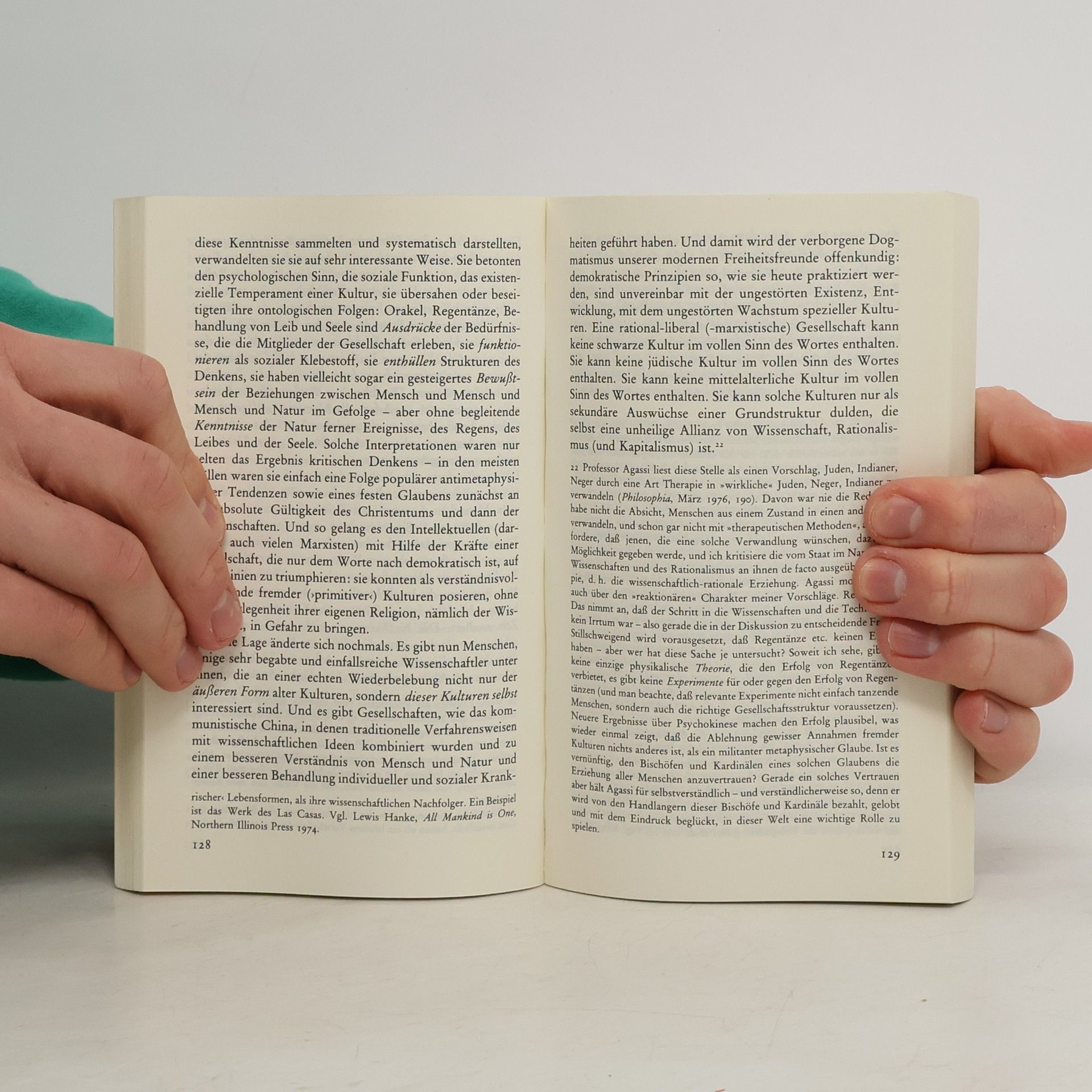 In der veränderten Neuausgabe (Feyerabend verfaßte eine neue Einleitung und schrieb das zentrale Kapitel über den Relativismus neu) von Erkenntnis für freie Menschen zieht Feyerabend die politischen Konsequenzen aus dieser These: »Wie beurteilt ein Bürger die Vorschläge der Institutionen, die ihn umgeben, von seinem Geld leben und sein Dasein verunstalten und wie beurteilt er diese Institutionen selbst? Er braucht Maßstäbe und Kriterien - das hören wir fortwährend von unseren Intellektuellen. Aber welche Maßstäbe wird er wählen? Die Antwort, die ich im vorliegenden Buch auf diese Frage gebe, erkläre und verteidige, lautet wie folgt: In einer freien Gesellschaft verwendet der Bürger die Maßstäbe der Tradition, der er angehört.«