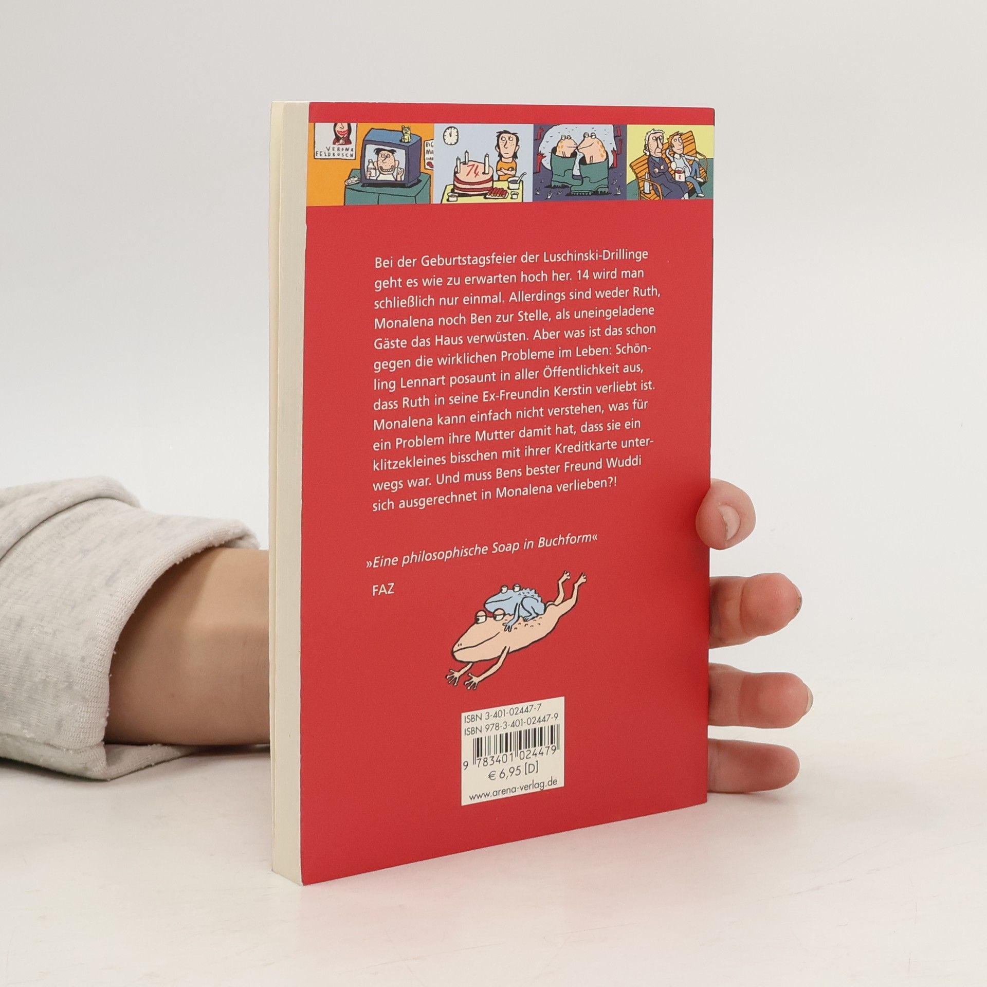 Sturm im Hause Luschinski. Nach der Geburtstagsfeier der Drillinge läuft wirklich alles aus dem Ruder: Ben leidet unter dem verliebten Wuddi, kriegt wieder Ärger mit Wolf-dem-Würger und überlegt, ob er nicht überhaupt besser ganz woanders wäre. Ruth wird von Kerstins Ex geoutet und würde am liebsten für eine Weile im Erdboden versinken. Und selbst Monalena fühlt sich nicht mehr wohl in ihrer Haut. Und daran soll nur die Liebe schuld sein?! §§Iris Anna Otto lässt die chaotischsten Drillinge der Welt auch hier wieder mit so weltbewegenden Dingen wie Liebe, Kröten und Verona Feldbusch kämpfen.