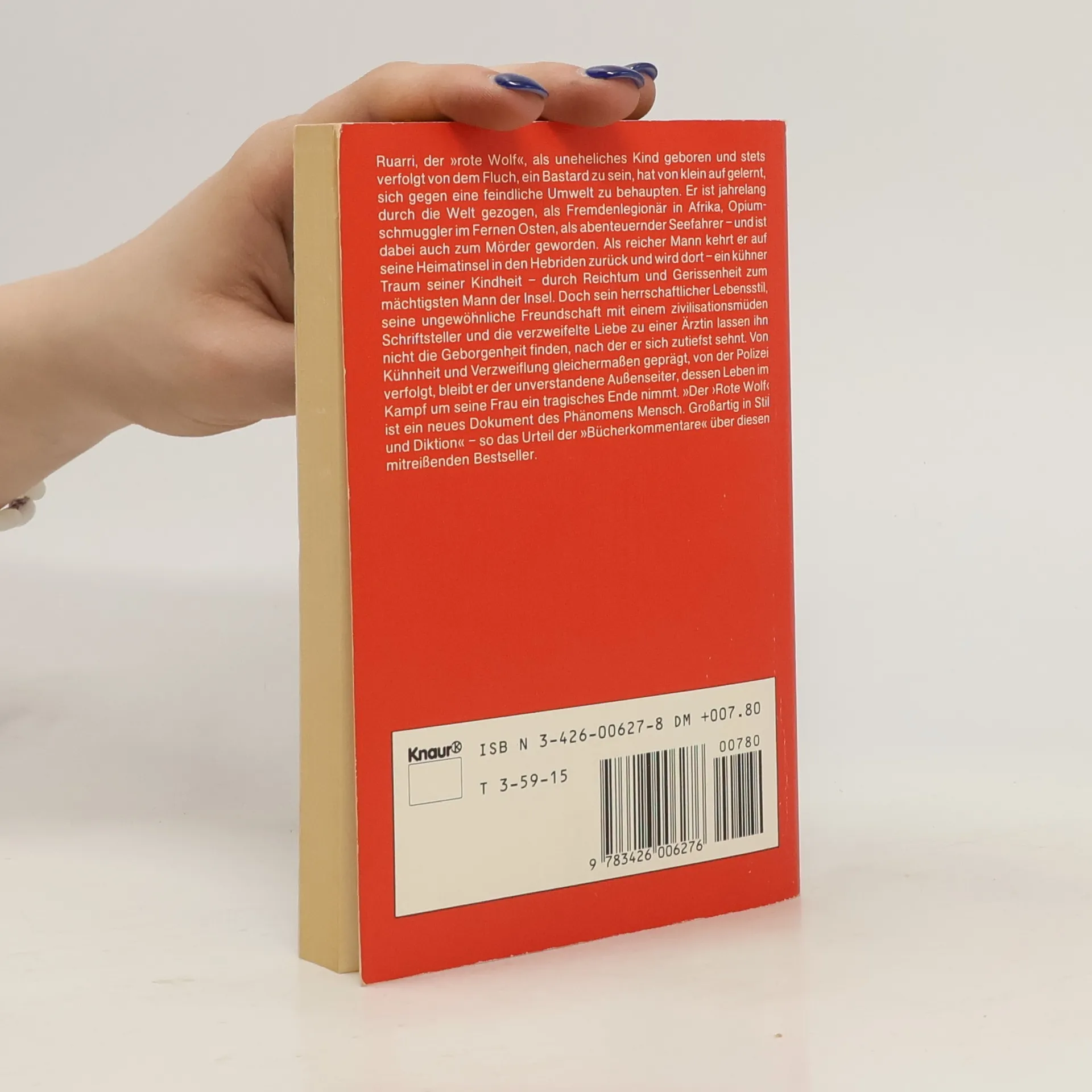 Ruarri, der "rote Wolf", als uneheliches Kind geboren und stets verfolgt von dem Fluch, ein Bastard zu sein, hat von klein auf gelernt, sich gegen eine feindliche Umwelt zu behaupten. Er ist jahrelang durch die Welt gezogen, als Fremdenlegionär in Afrika. Opiumschmuggler im Fernen Osten, als abenteuernder Seefahrer - und ist dabei auch zum Mörder geworden. Als reicher Mann kehrt er auf seine Heimatinsel in den Hebriden zurück und wird dort - ein kühner Traum seiner Kindheit - durch Reichtum und Gerissenheit zum mächtigsten Mann der Insel. Doch sein herrschaftlicher Lebensstil, seine ungewöhnliche Freundschaft mit deinem zivilisationsmüden Schriftsteller und die verzweifelte Liebe zu einer Ärztin lassen ihn nicht die Geborgenheit finden, nach der er sich zutiefst sehnt. Von Kühnheit und Verzweiflung gleichermaßen geprägt, von der Polizei verfolgt, bleibt er der unverstandene Außenseiter, dessen Leben im Kampf um seine Frau ein tragisches Ende nimmt.