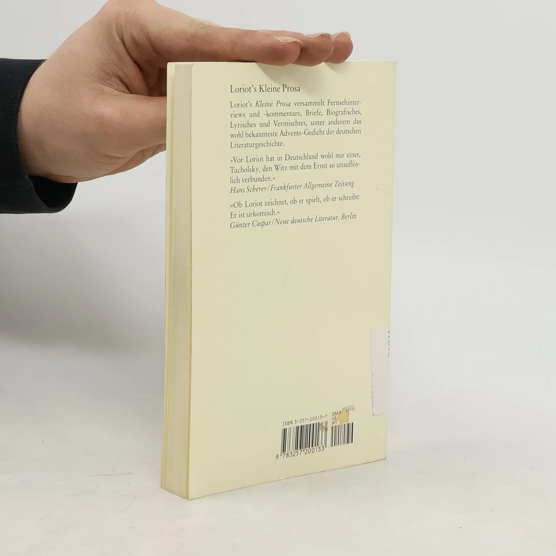 Loriots Kleine Prosa versammelt Fernsehinterviews und -kommentare, Briefe, Biografisches, Lyrisches und Vermischtes, unter anderem das wohl bekannteste Advents-Gedicht der deutschen Literaturgeschichte. Trotz viel Text, mit vielen Illustrationen des Verfassers.