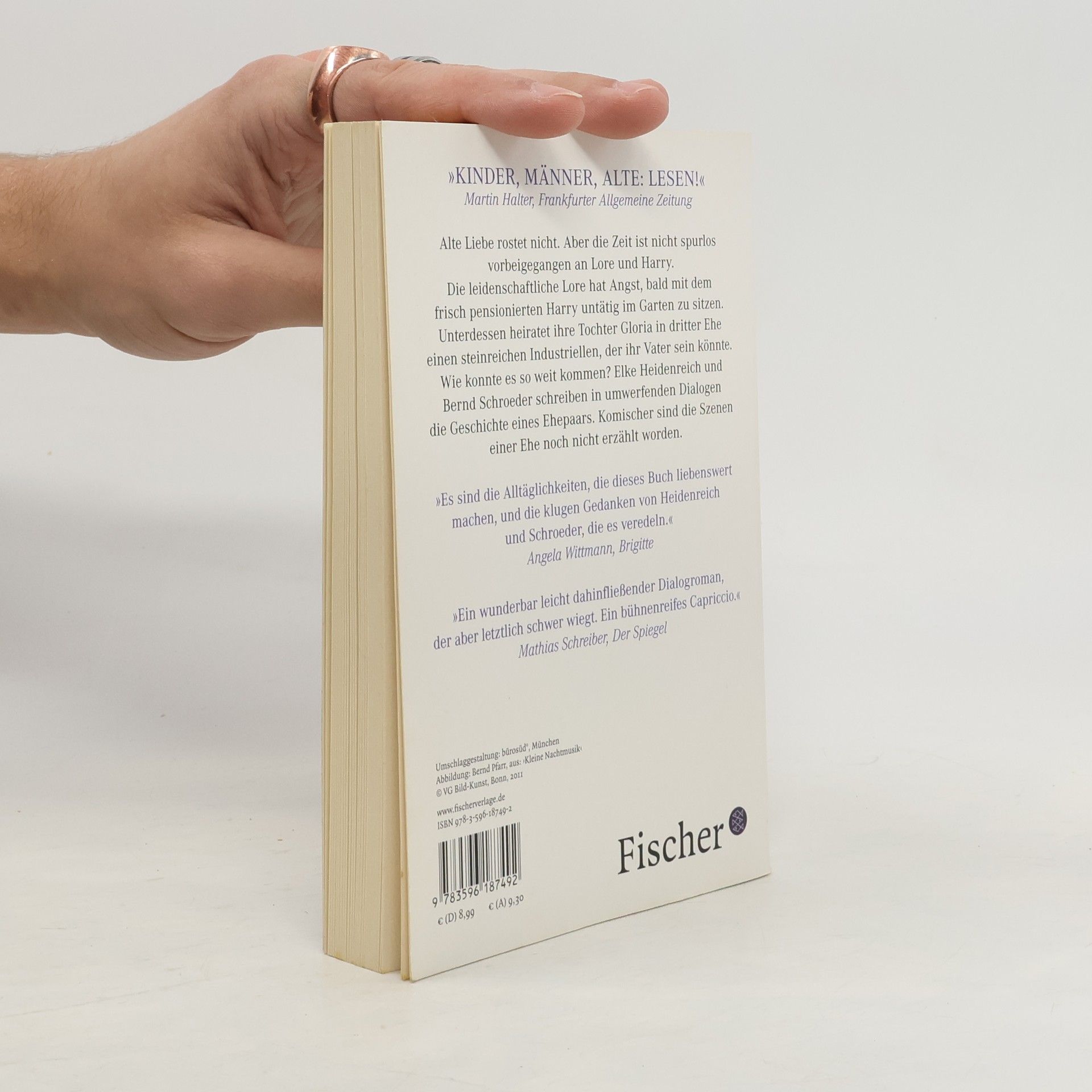 Alte Liebe rostet nicht. Aber die Zeit ist nicht spurlos vorbeigegangen an Lore und Harry. Die leidenschaftliche Lore hat Angst, bald mit dem frisch pensionierten Harry untätig im Garten zu sitzen. Unterdessen heiratet ihre Tochter Gloria in dritter Ehe einen steinreichen Industriellen, der ihr Vater sein könnte. Wie konnte es so weit kommen? Elke Heidenreich und Bernd Schroeder erzählen in umwerfenden Dialogen die Geschichte eines Ehepaars. Komischer sind die Szenen einer Ehe noch nicht erzählt worden.