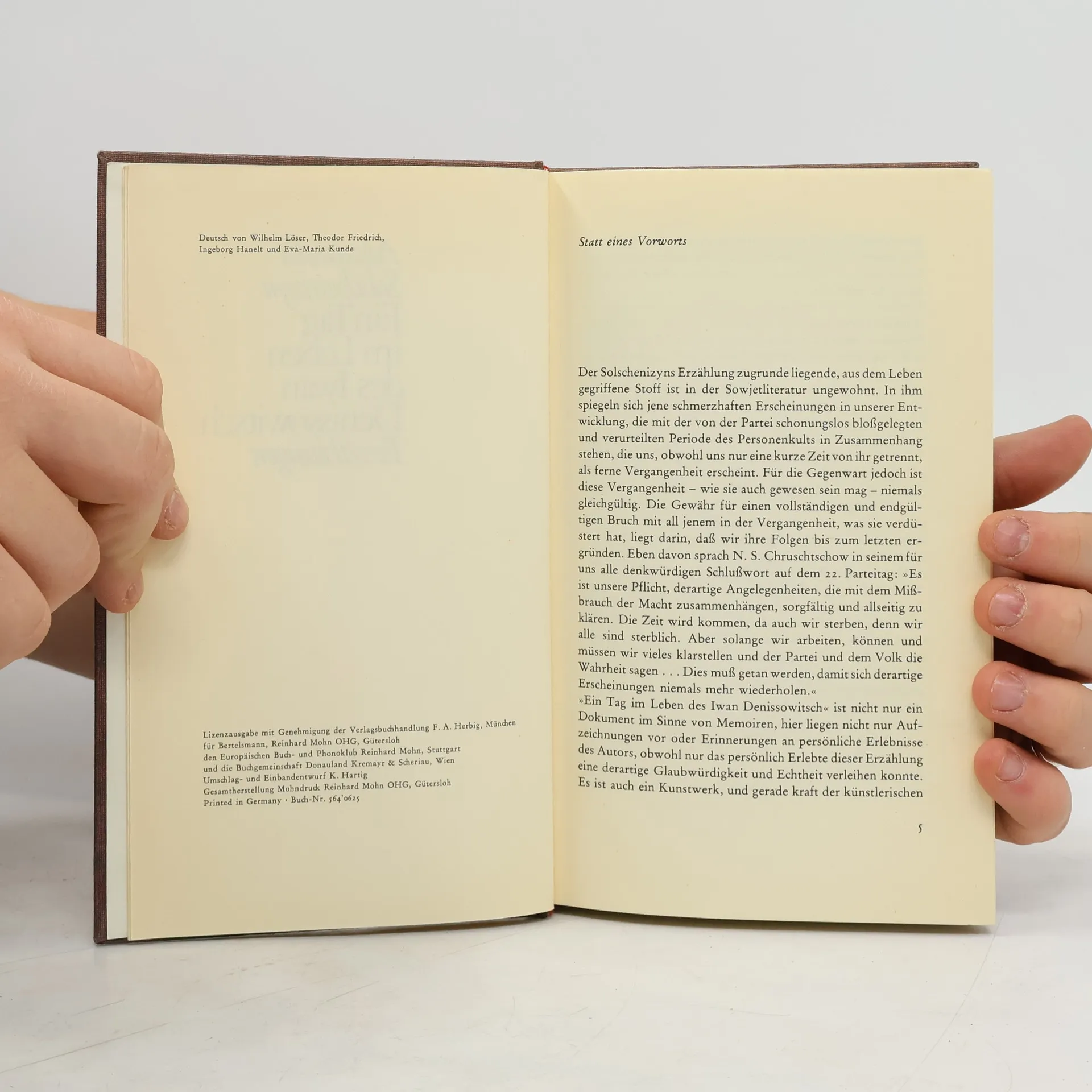 Nikita Chruschtschow mahnte eindringlich auf dem 22. Parteitag der KPdSU: 'Es ist unsere Pflicht, derartige Angelegenheiten, die mit dem Mißbrauch der Macht zusammenhängen, sorgfältig und allseitig zu klären. Solange wir arbeiten, können und müssen wir vieles klarstellen und der Partei und dem Volk die Wahrheit sagen...' Mit dieser Erklärung setzte er sich für ein literarisches Werk ein, das nach Erscheinen sofort Weltruhm erlangte: 'Ein Tag im Leben des Iwan Denissowitsch'. Es bringt keine sensationellen Enthüllungen, sondern die nüchterne, mikroskopisch genaue Untersuchung des Lagerlebens in Sibirien, so wie es von den Opfern der stalinistischen Periode erlebt wurde.