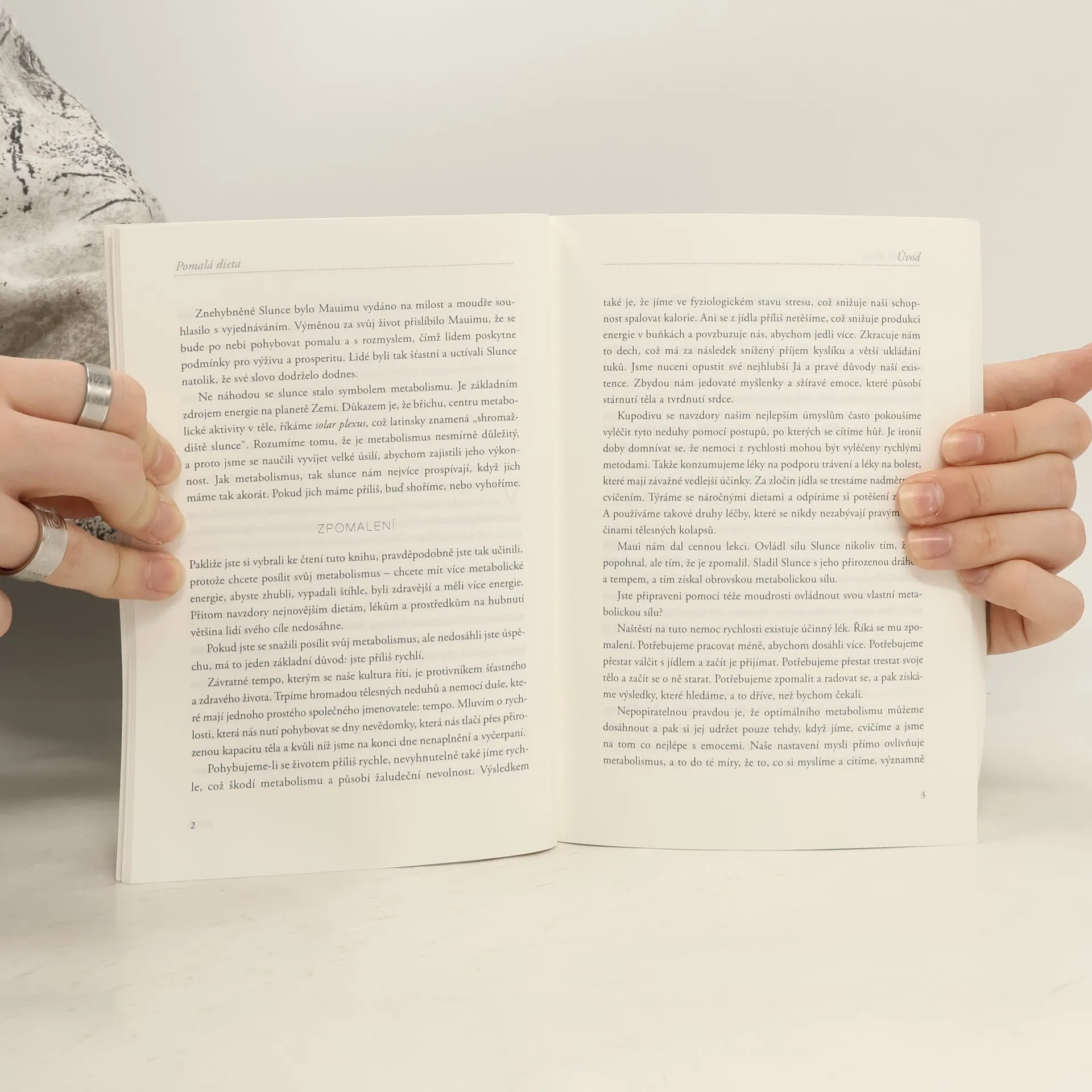 V naší moderní kultuře se snažíme vtěsnat co nejvíce do co nejmenšího času, což vede k rychlému životnímu stylu, který je nezdravý. Rychlé a stresové stravování nám odnímá potěšení z jídla, způsobuje trávicí potíže a poškozuje metabolismus. Mnozí se cítí nevyživení, bez inspirace a bojují s nadváhou. Autor ukazuje nový přístup k našemu vztahu k jídlu, zaměřující se na kvalitu a potěšení, které mohou zlepšit metabolismus. Uvádí výsledky výzkumů o biochemii těla a úspěšné příběhy ze své praxe výživového poradce. Zdůrazňuje, že jsme bytosti těla, mysli a ducha, a když se věnujeme všem těmto aspektům, můžeme zhubnout, zvýšit energii a posílit trávení. Předkládá osmitýdenní program, který čtenářům pomáhá prozkoumat jejich osobní vztah k jídlu, zbavit se strachů a starých návyků, a naučit se zacházet se svým tělem s úctou a láskou. Odhaluje nedostatky rychlých diet a mýtů o výživě, jako je „méně jíst a více cvičit“. Místo toho vysvětluje, jak snížit hladinu stresových hormonů a aktivovat metabolismus pomocí správného dýchání a výživových strategií.