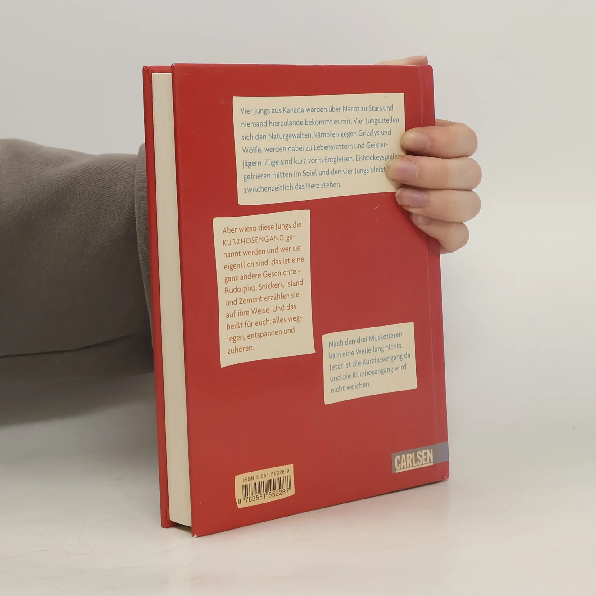 Vier Jungs aus den Tiefen Kanadas werden über Nacht zu Stars und niemand bekommt es mit. Vier Jungs stellen sich den Naturgewalten, kämpfen gegen Grizzlys und Wölfe, werden dabei zu Hebammen, Lebensrettern und treten auch noch im Fernsehen aufzutreten. Aber wieso diese vier Jungs die Kurzhosengang genannt werden, wer sie genau sind und warum noch keiner hier was von ihnen gehört hat, das ist eine ganz andere Geschichte - Rudolpho, Snickers, Island und Zement erzählen sie auf ihre Art und Weise. Und das heißt: alles weglegen, entspannen und zuhören.